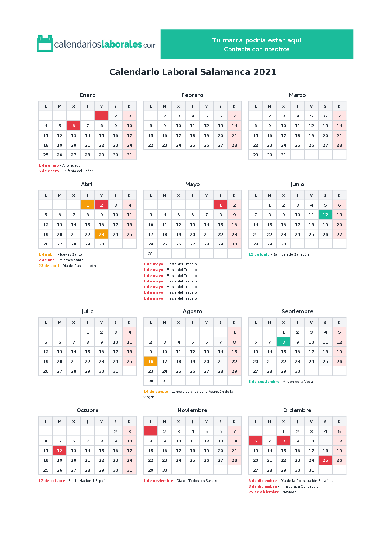 Calendario laboral Salamanca 2021