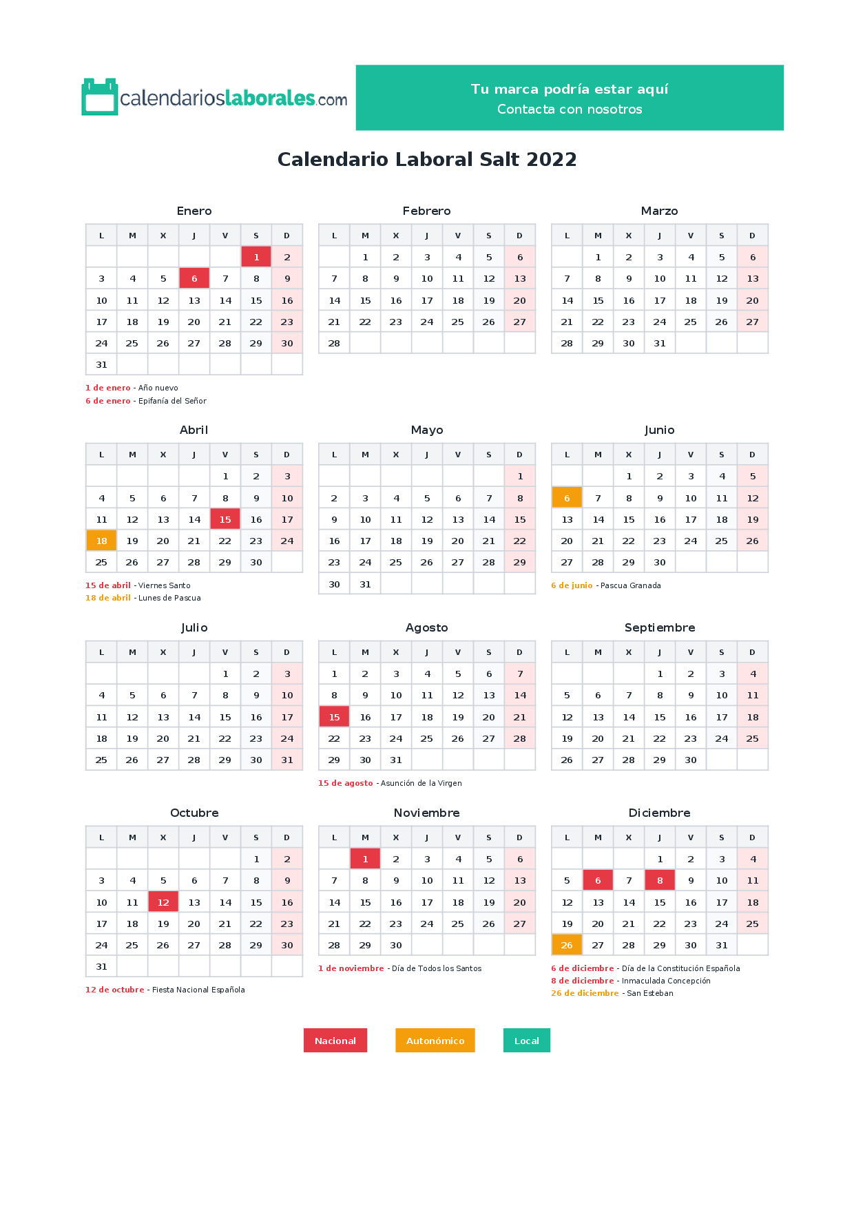 ¿Es oficial este calendario laboral?