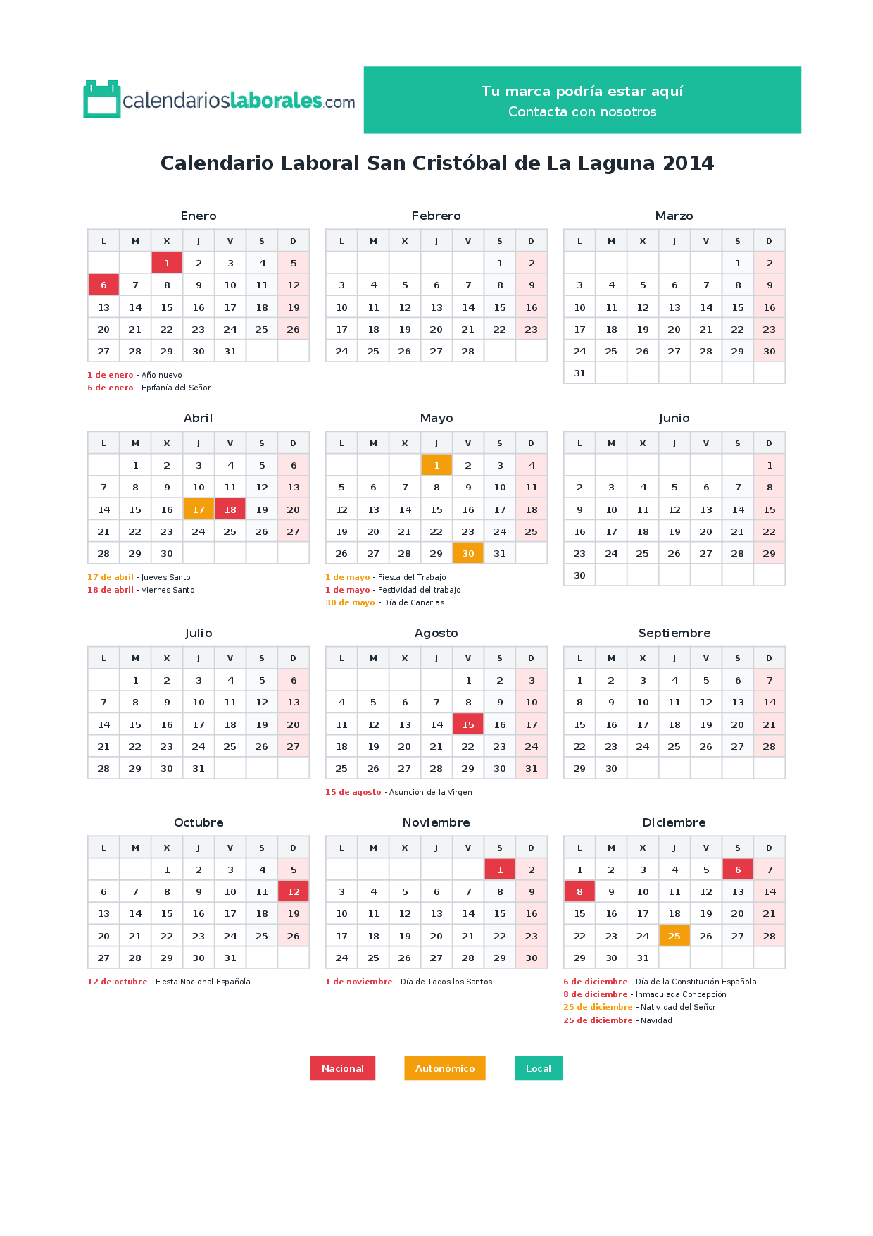 Calendario laboral San Cristóbal de La Laguna 2014