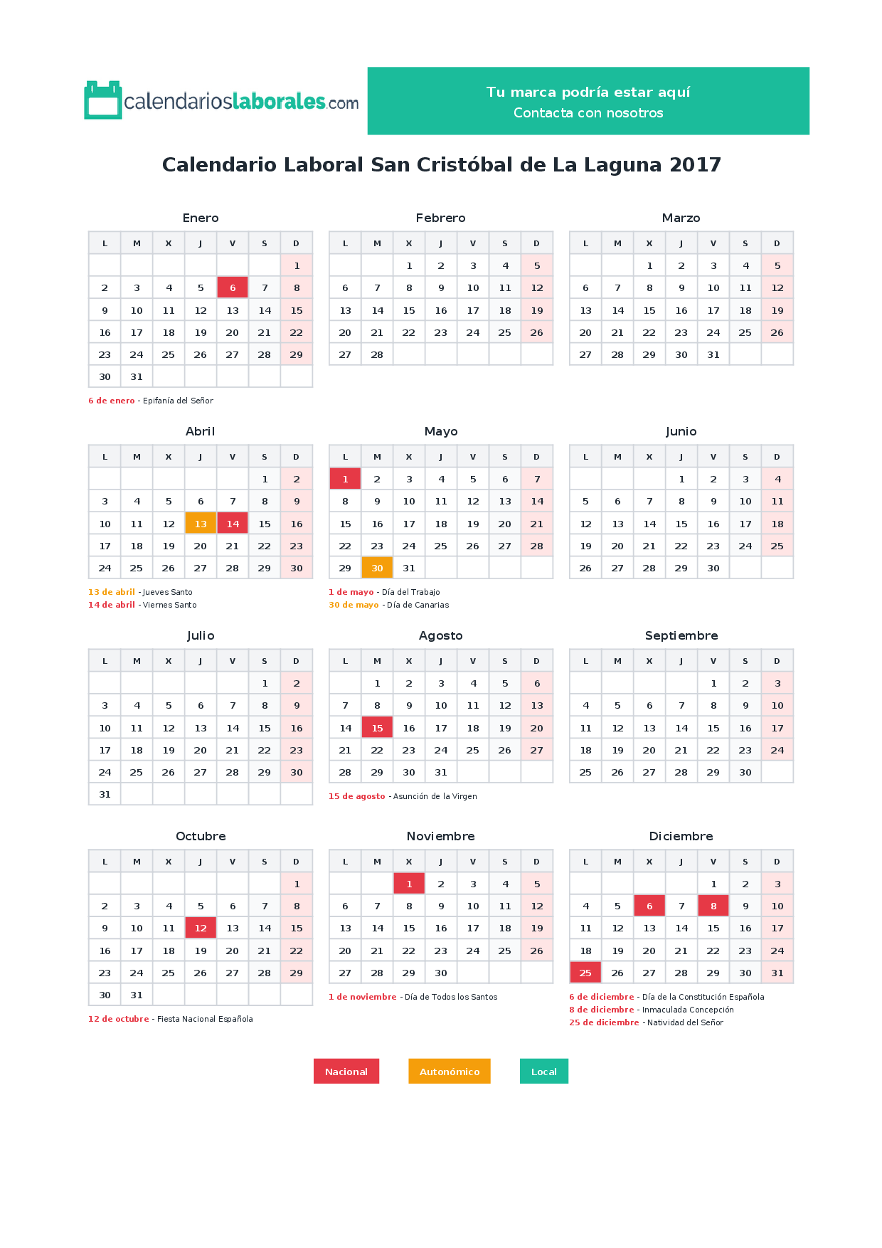 Calendario laboral San Cristóbal de La Laguna 2017