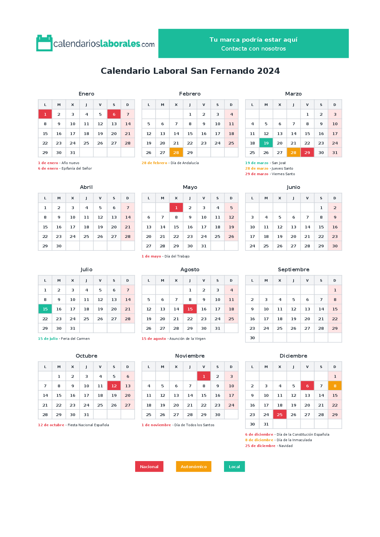 Calendario laboral San Fernando 2024