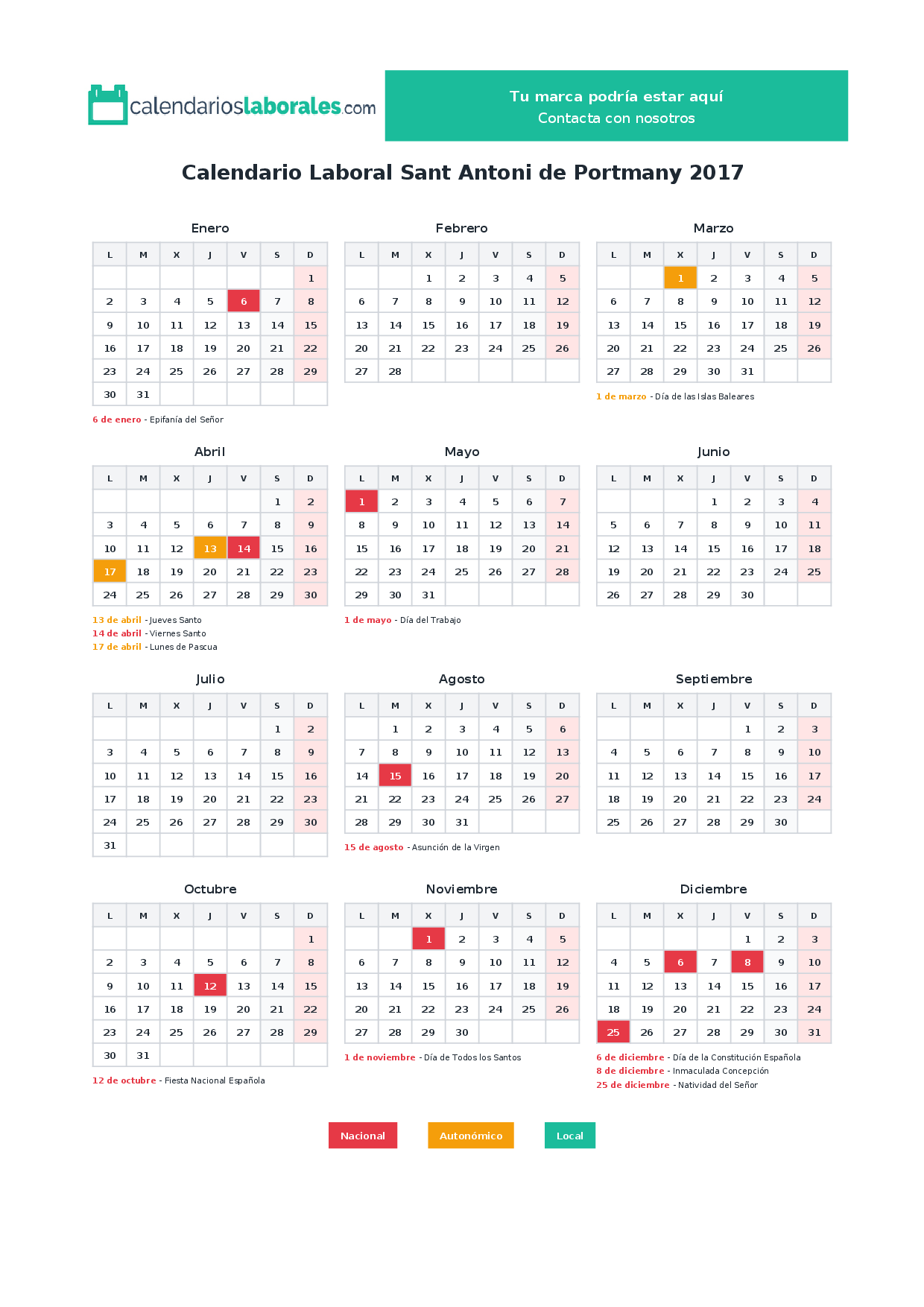 Calendario laboral Sant Antoni de Portmany 2017