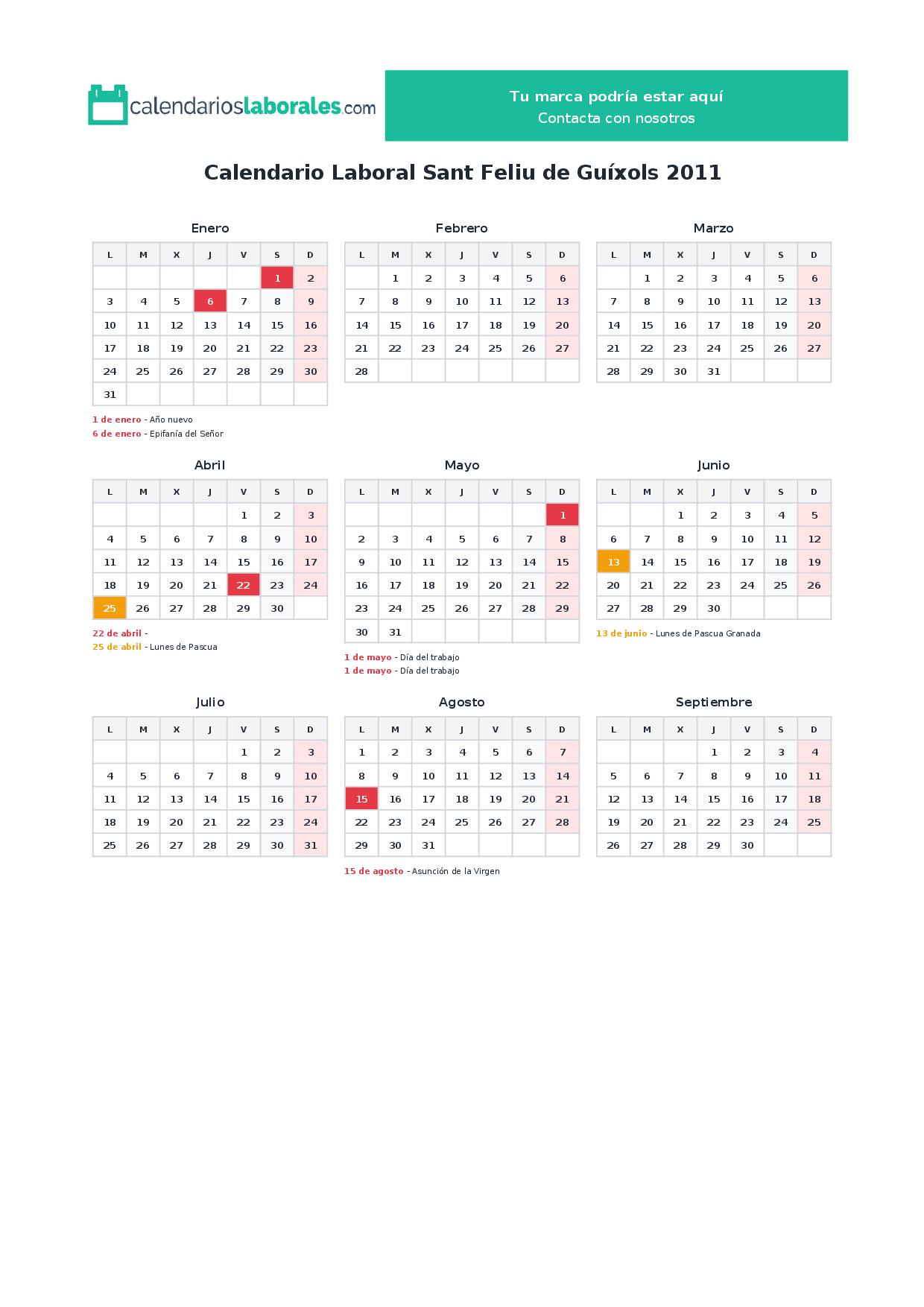Calendario laboral Sant Feliu de Guíxols 2011