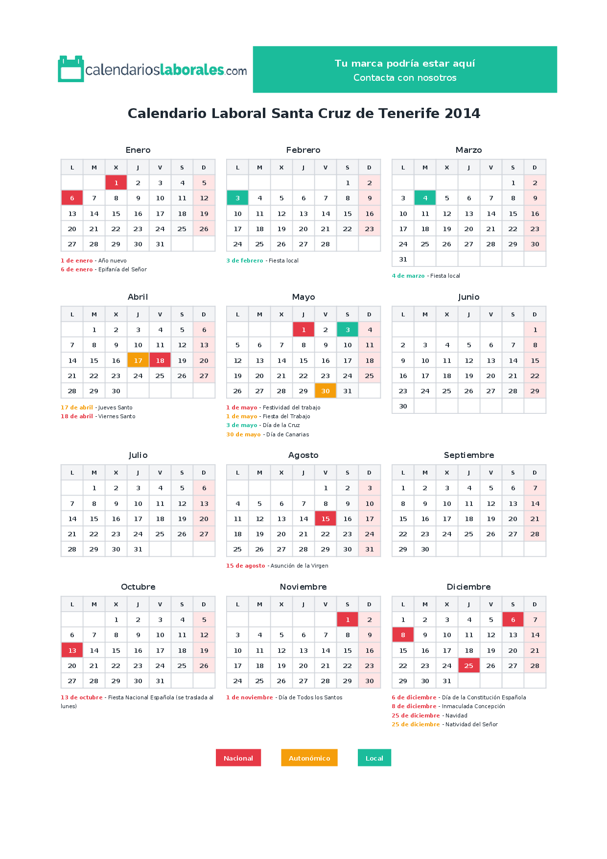 Festivos nacionales en Santa Cruz de Tenerife 2014