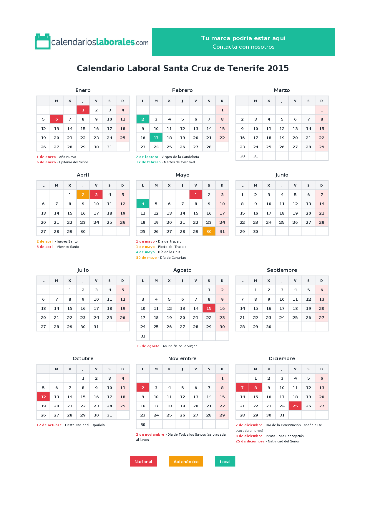 Calendario laboral Santa Cruz de Tenerife 2015