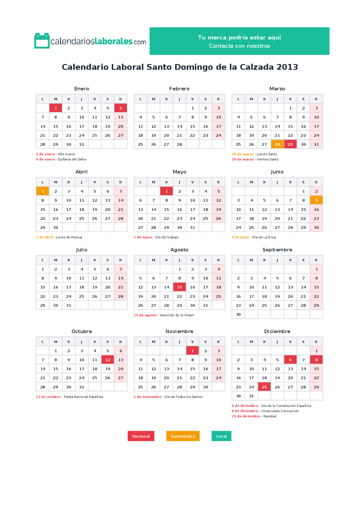 Calendario laboral Santo Domingo de la Calzada 2013