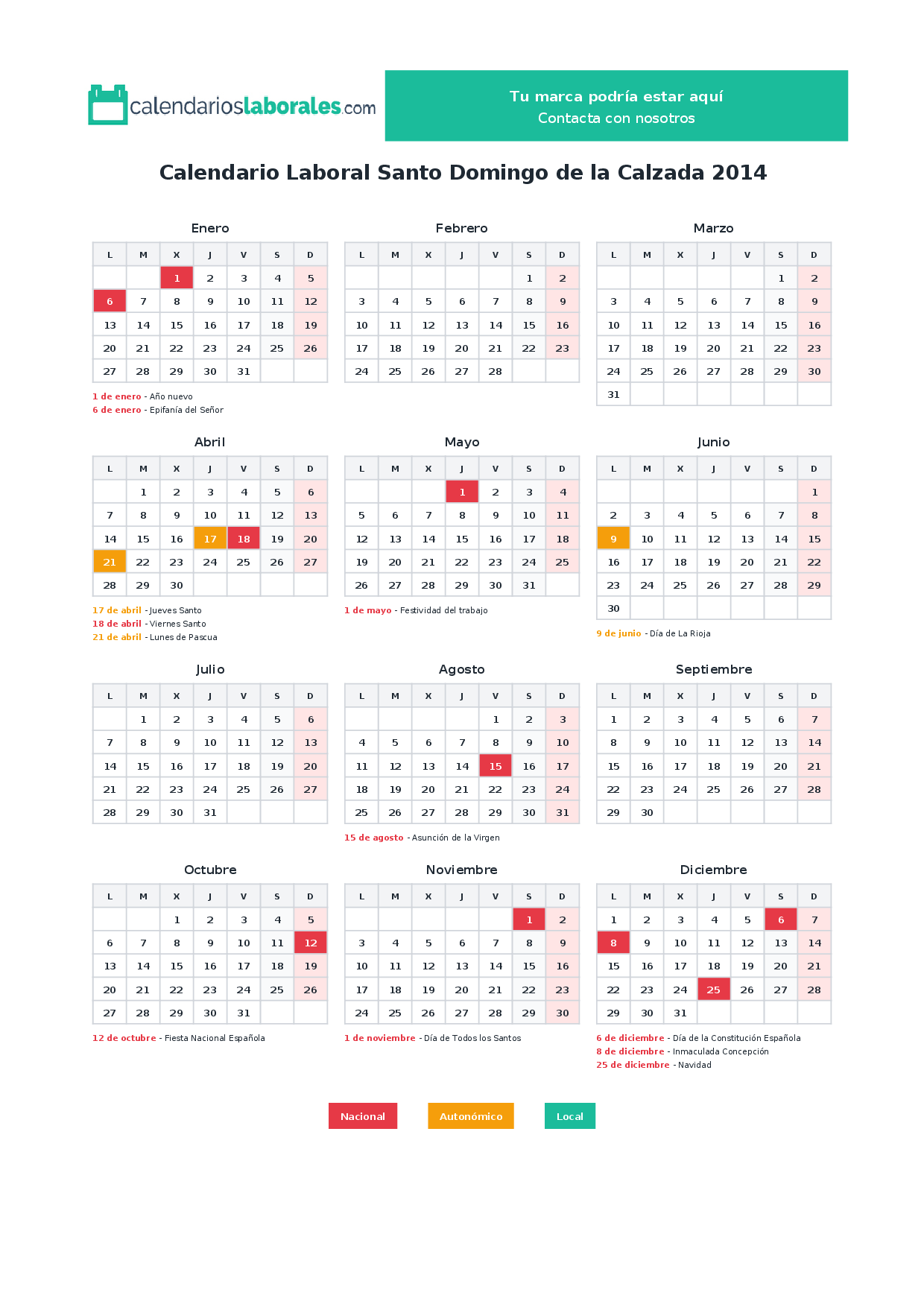 Calendario laboral Santo Domingo de la Calzada 2014