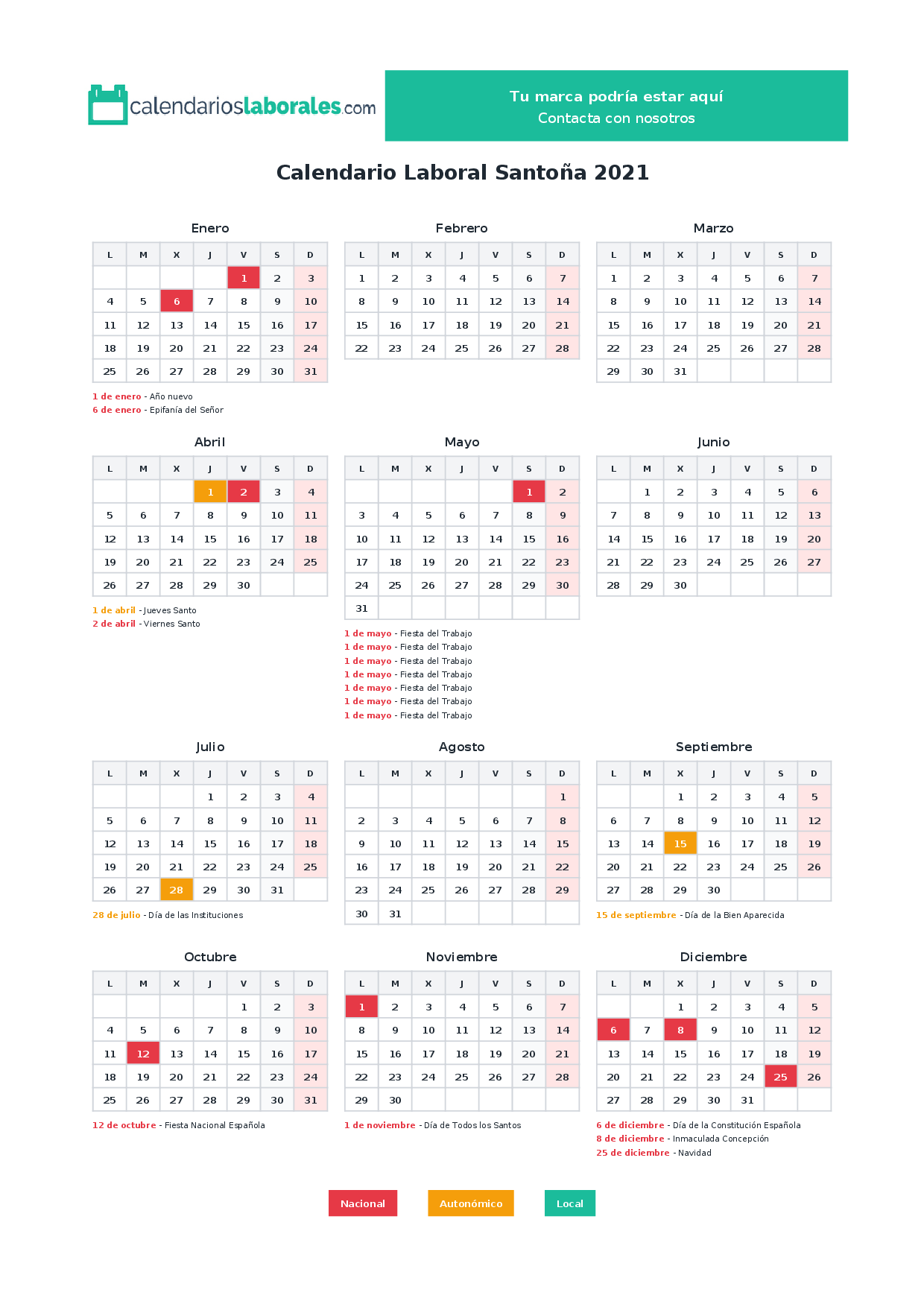 Calendario laboral Santoña 2021