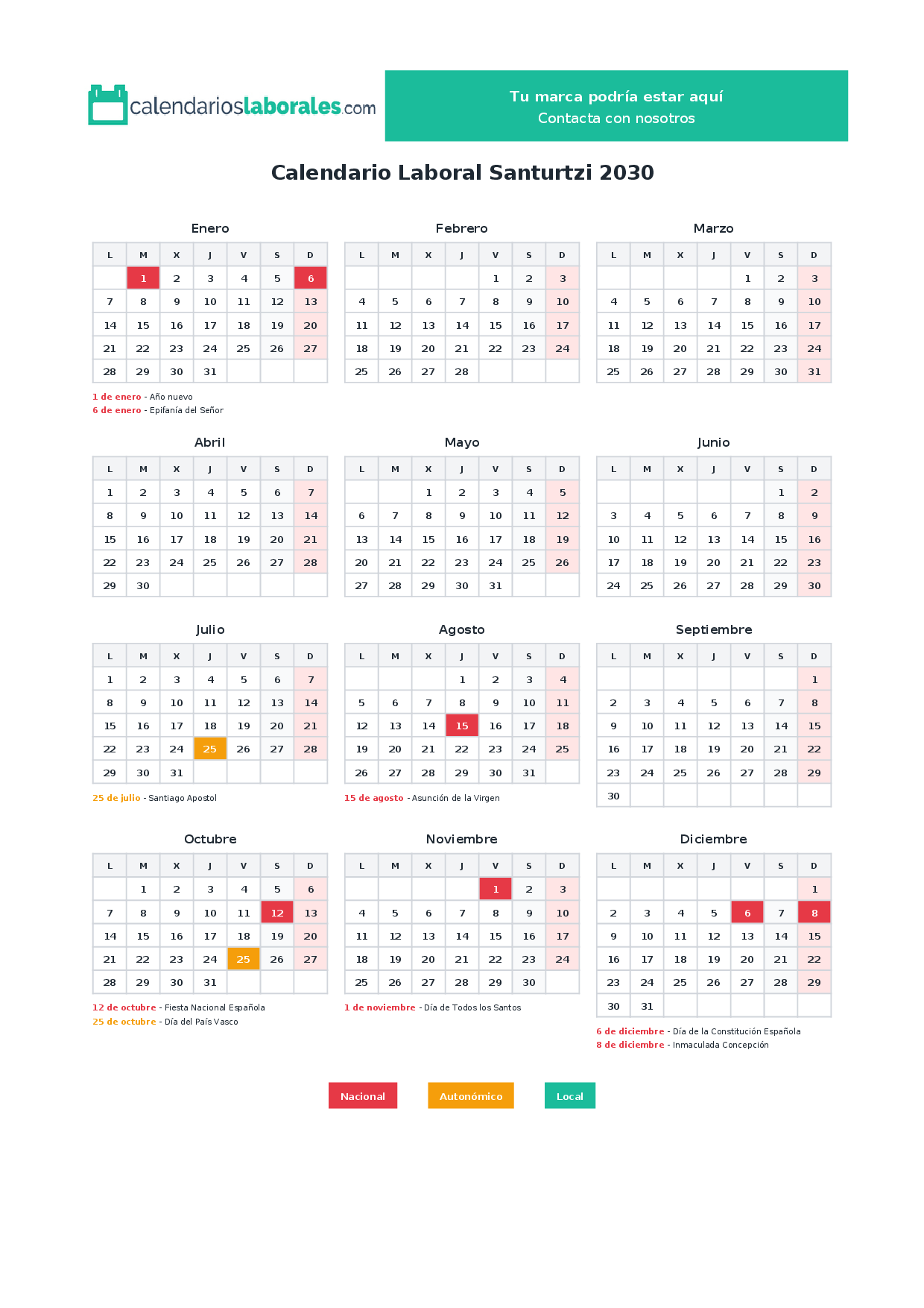 Calendario laboral Santurtzi 2030