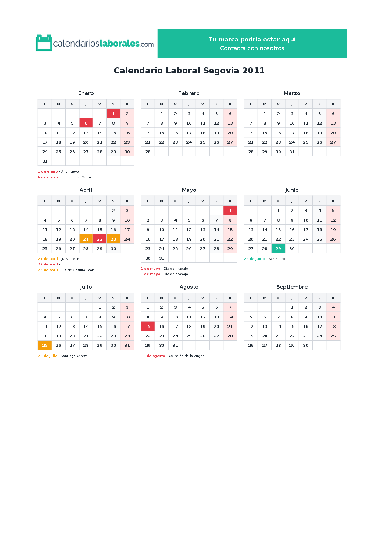 Calendario laboral Segovia 2011