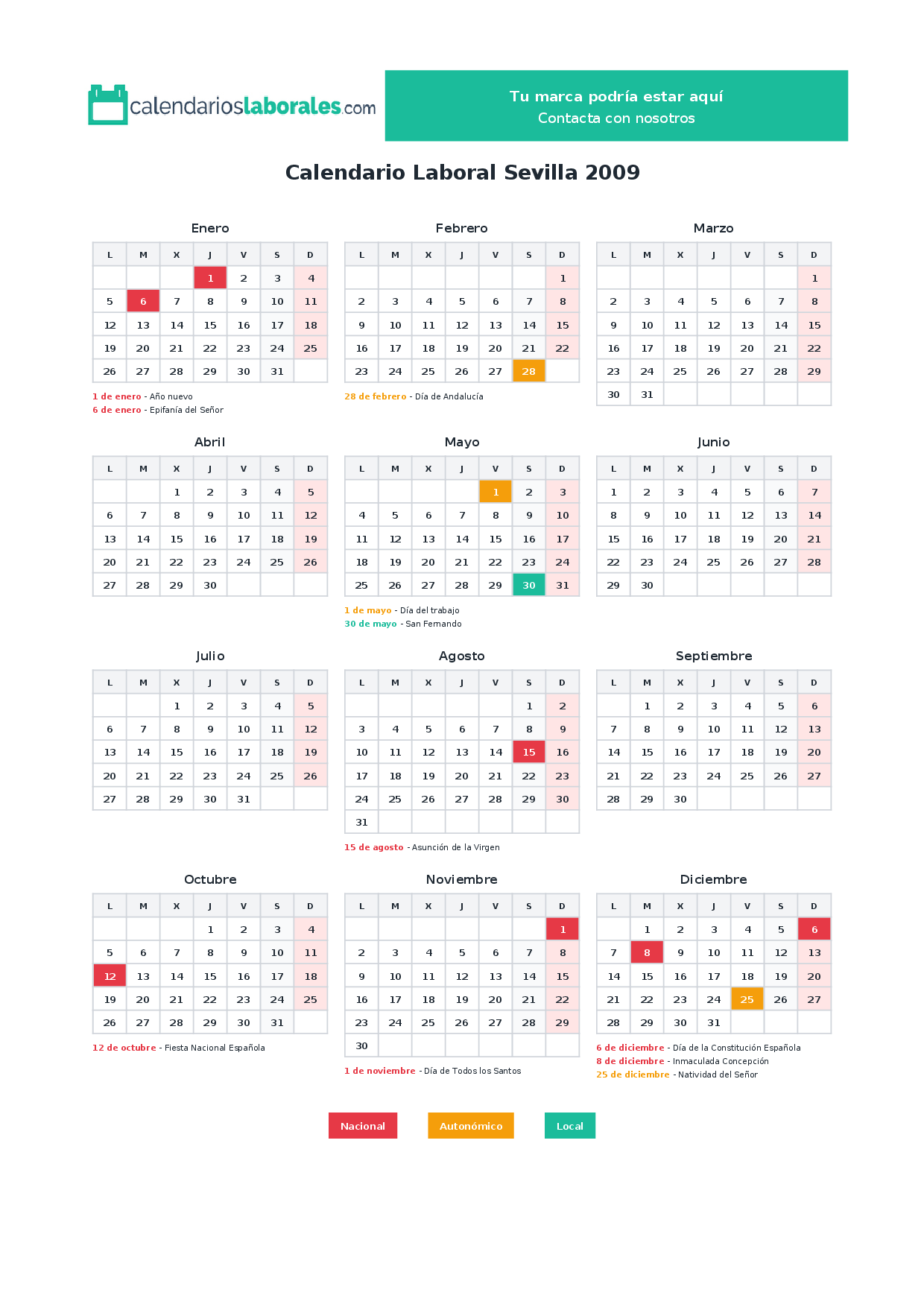 Calendario laboral Sevilla 2009