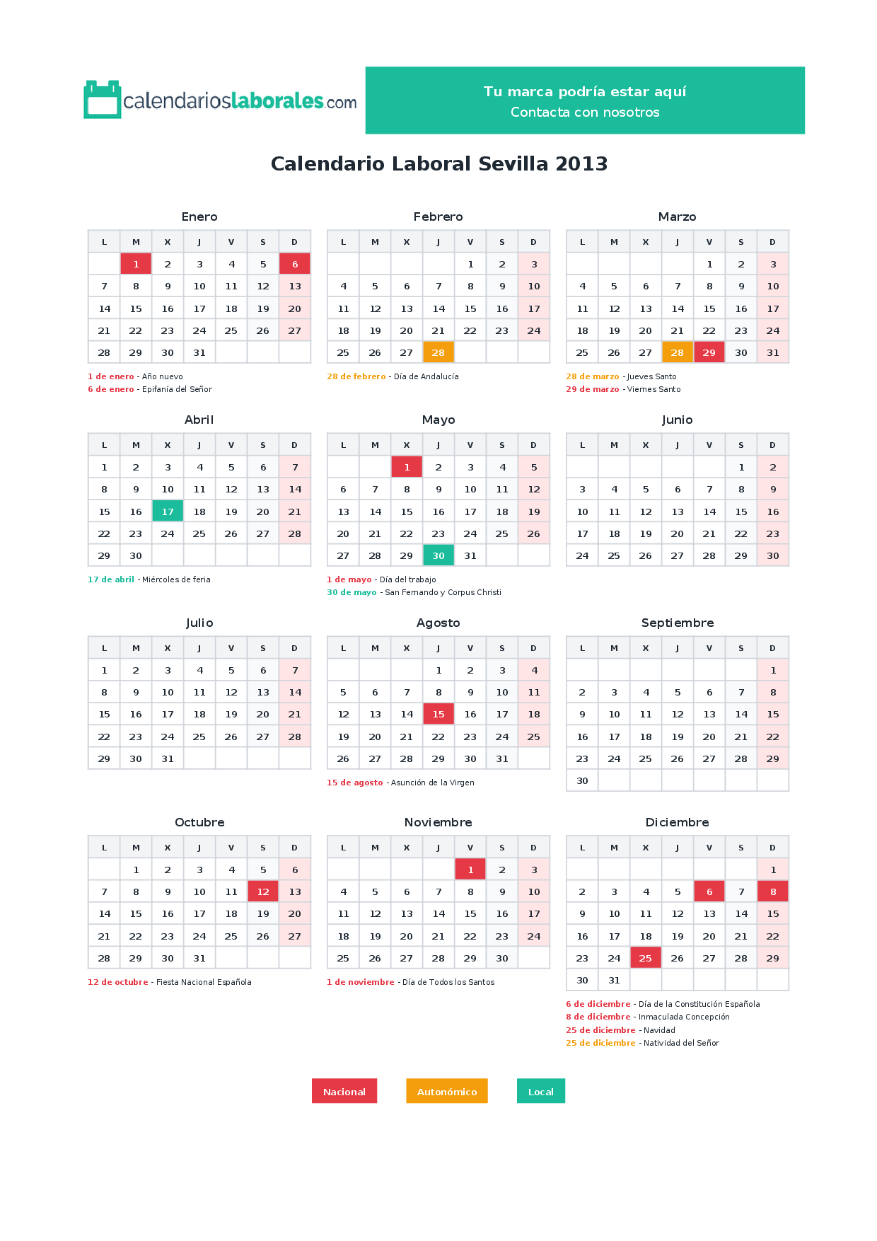 Calendario laboral Sevilla 2013