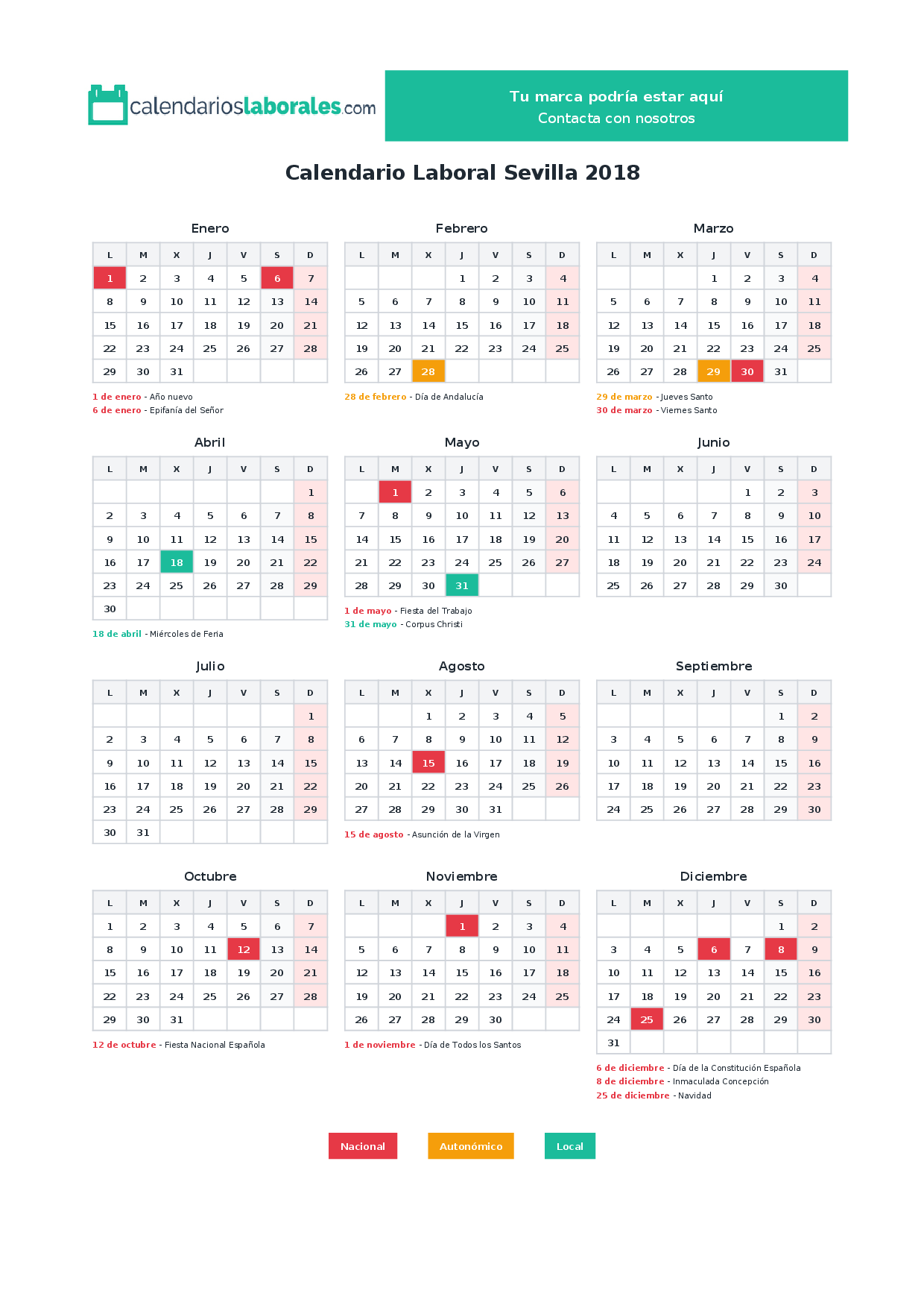 Calendario laboral Sevilla 2018