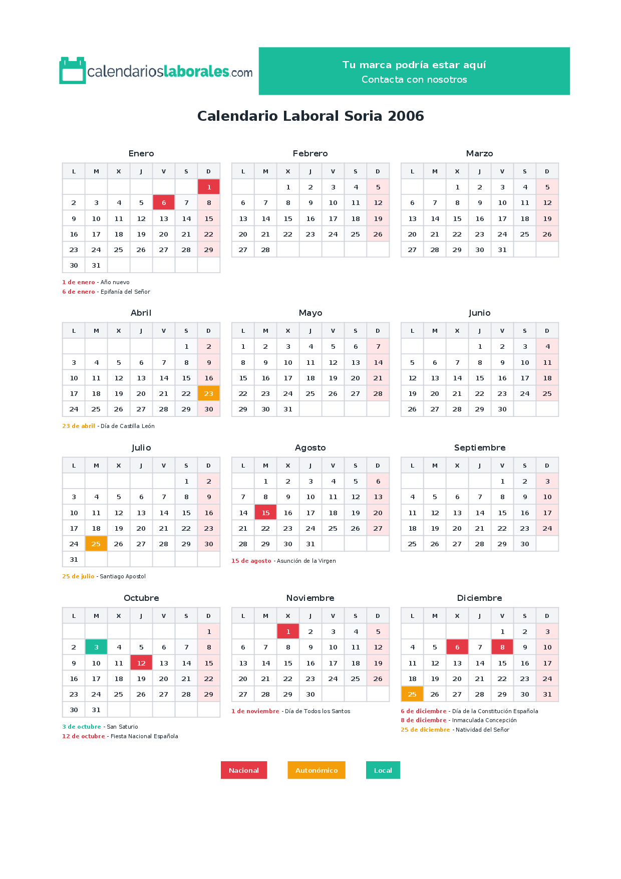 Calendario laboral Soria 2006