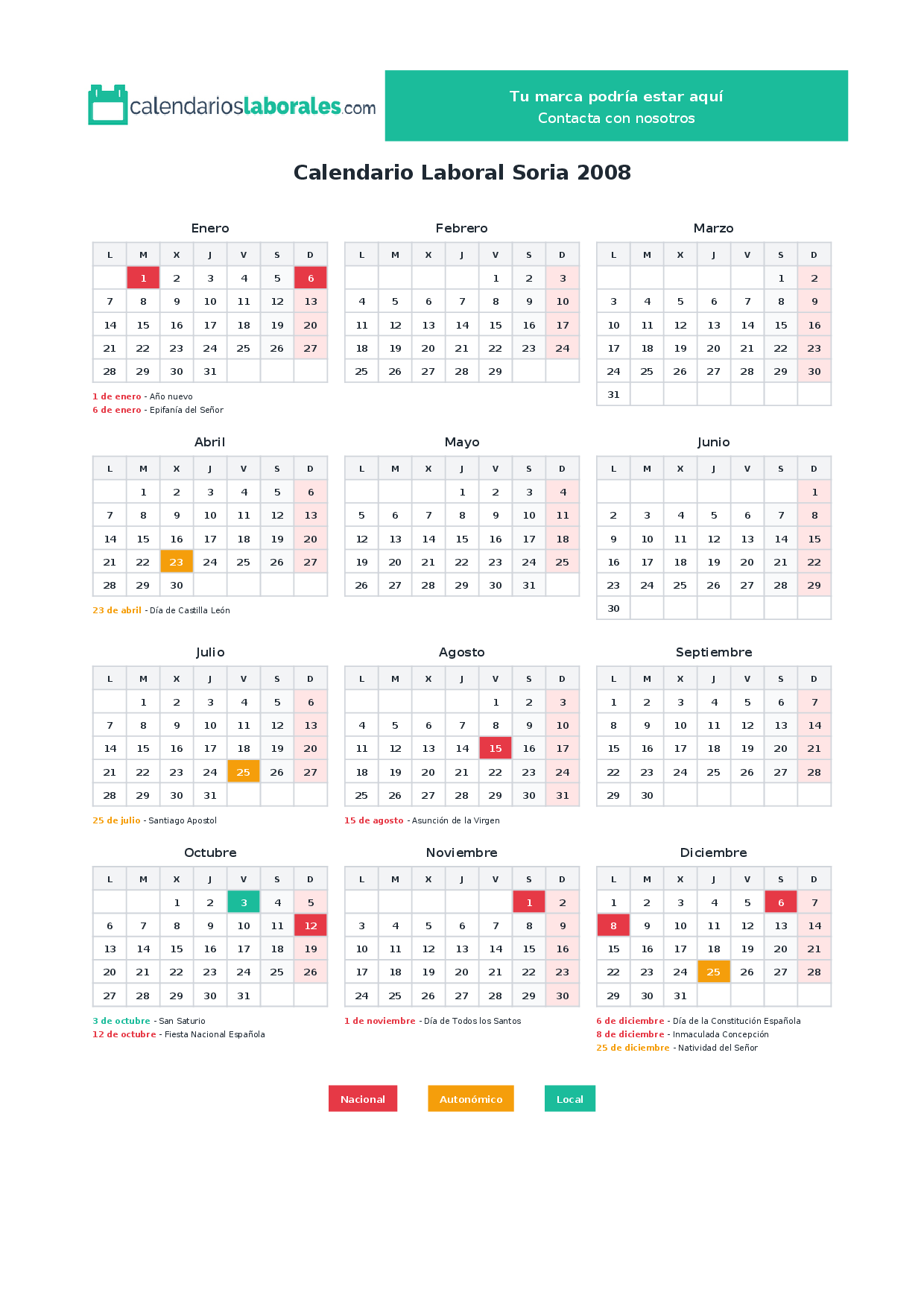 Calendario laboral Soria 2008