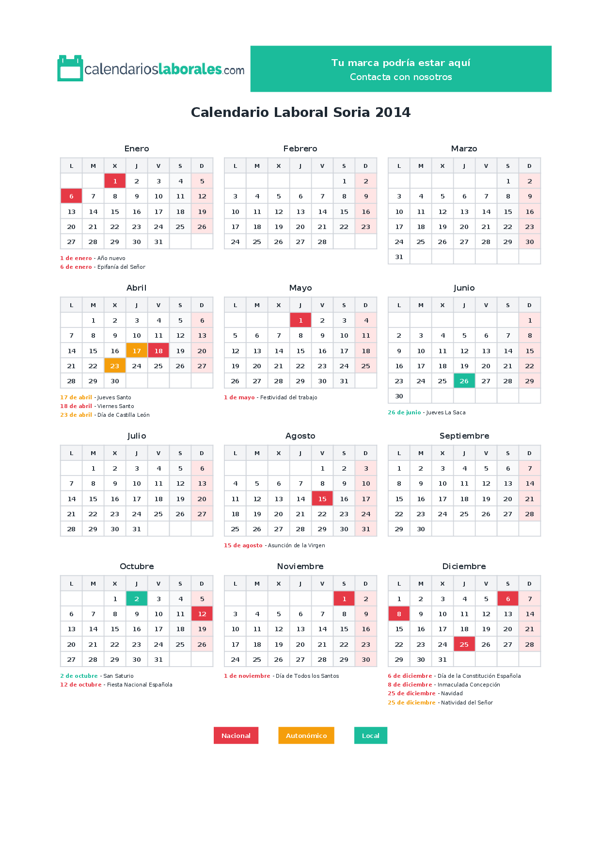 Calendario laboral Soria 2014