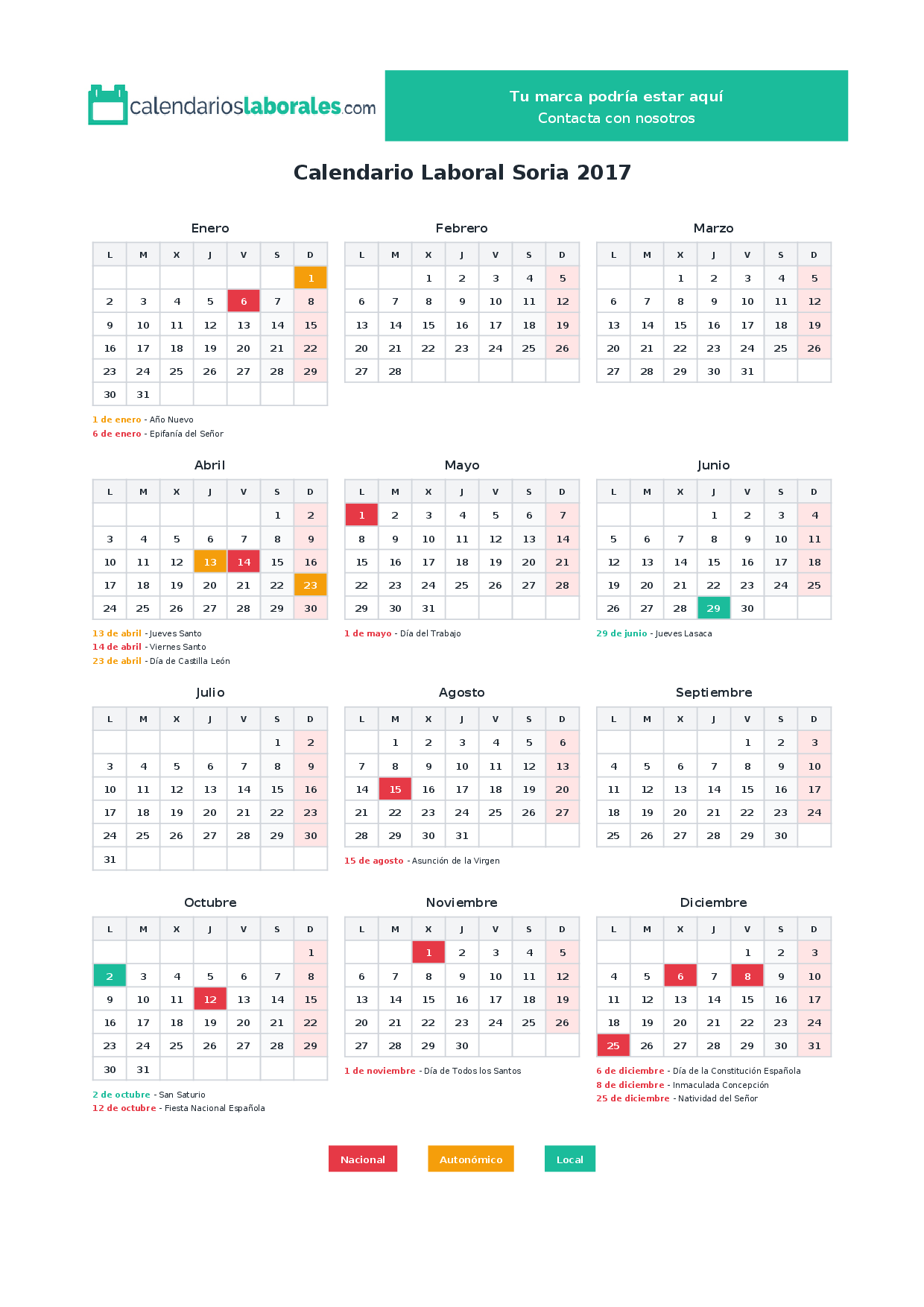Calendario laboral Soria 2017