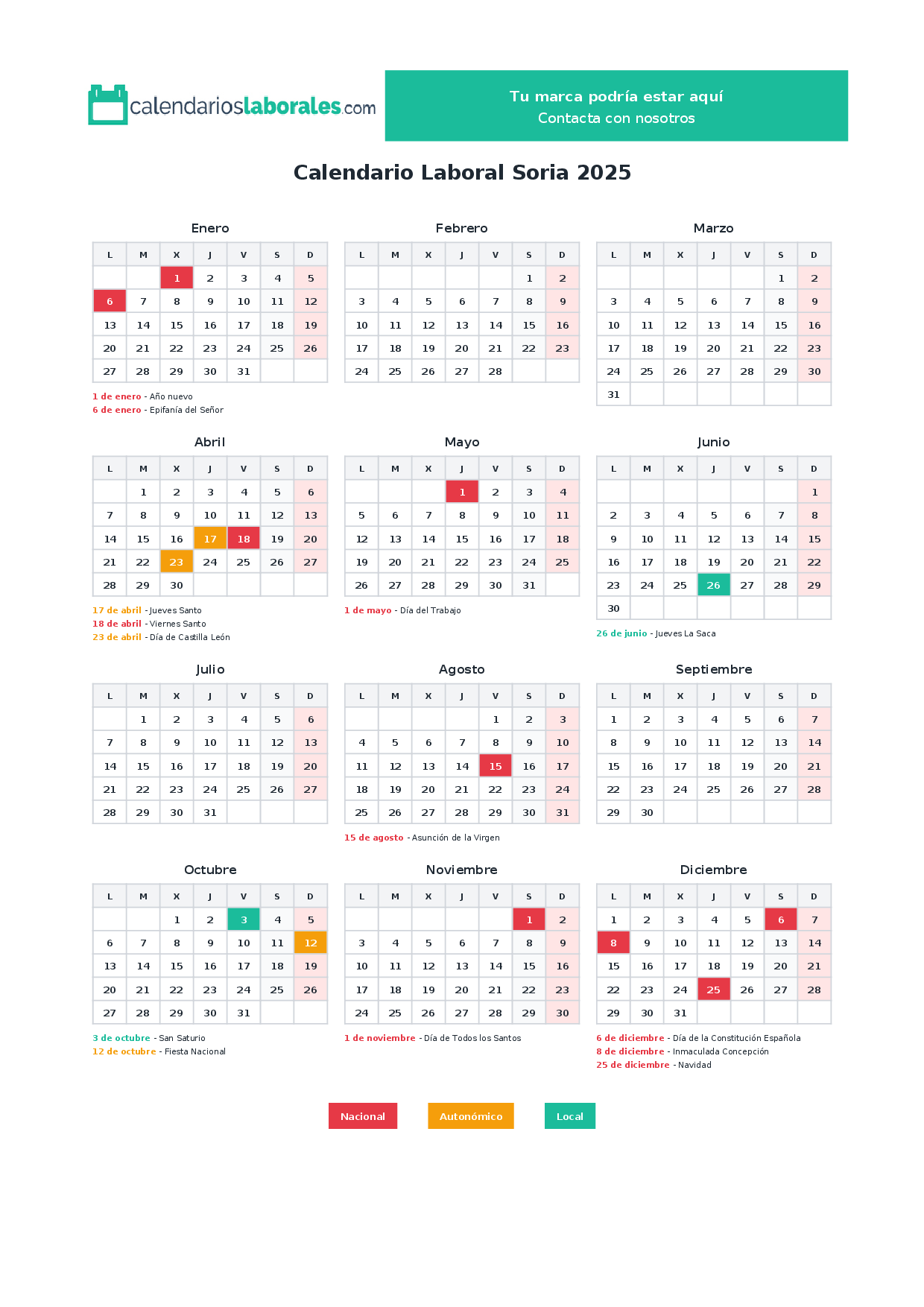 Calendario laboral Soria 2025