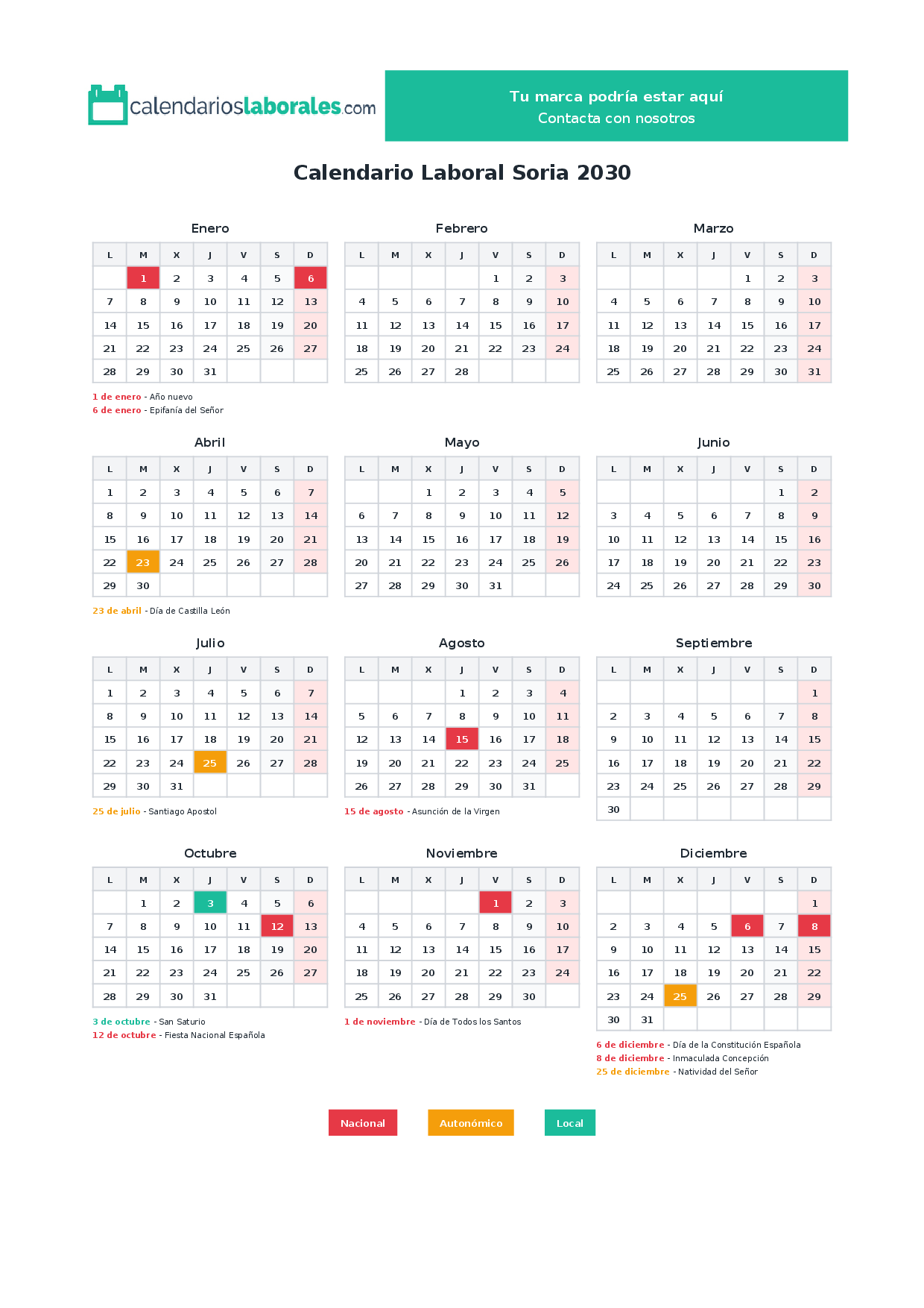 Calendario laboral Soria 2030