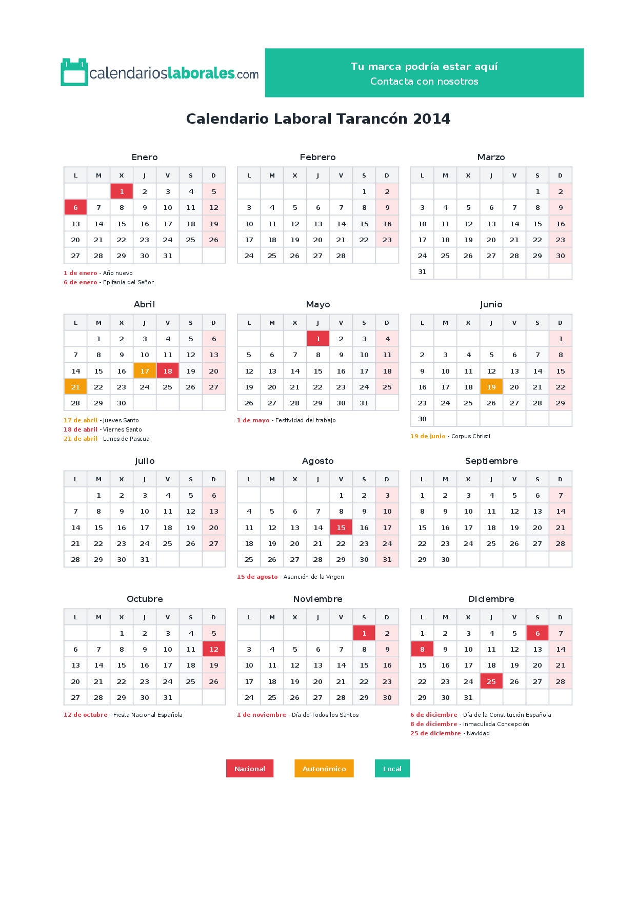 Calendario laboral Tarancón 2014