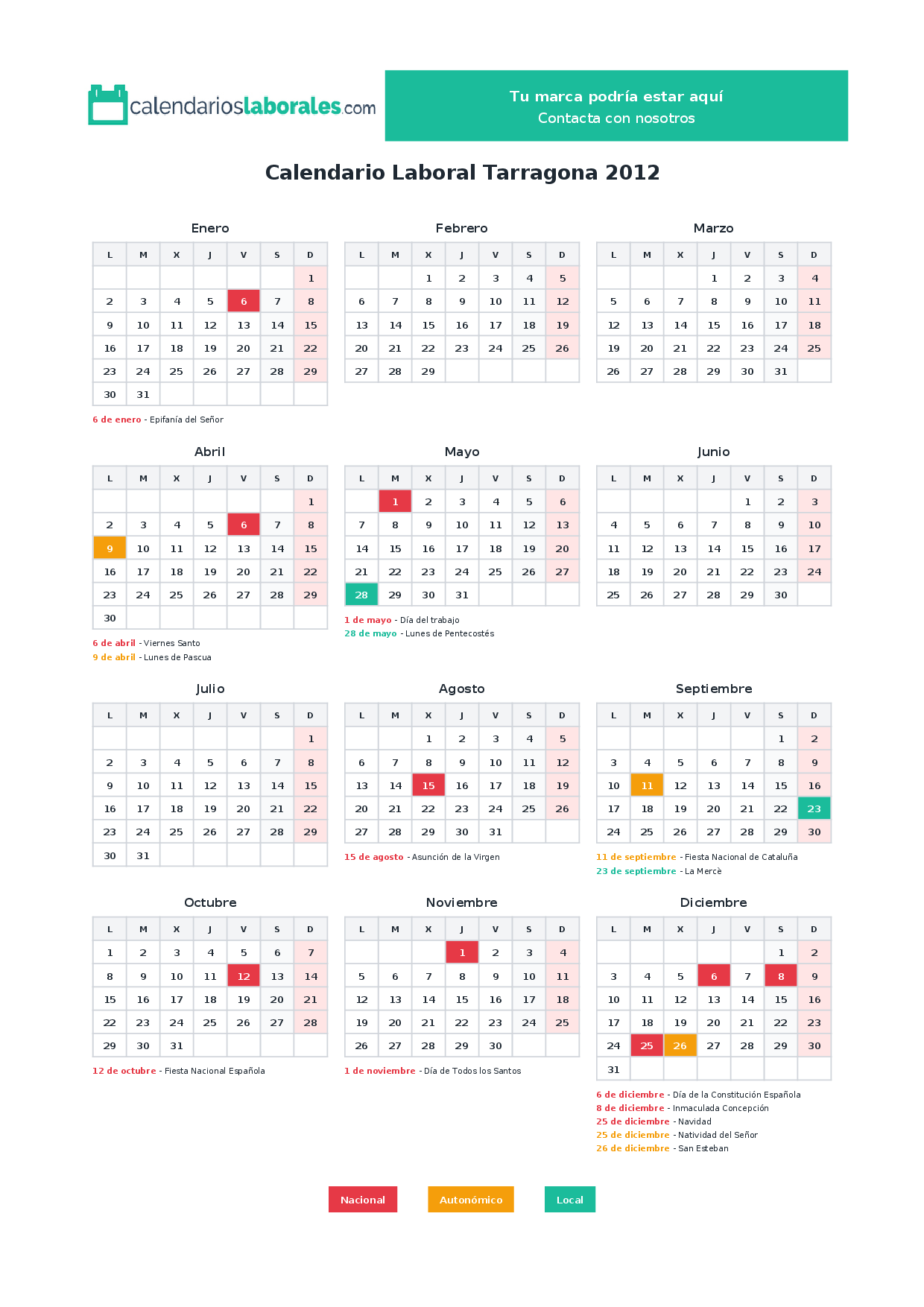Calendario laboral Tarragona 2012