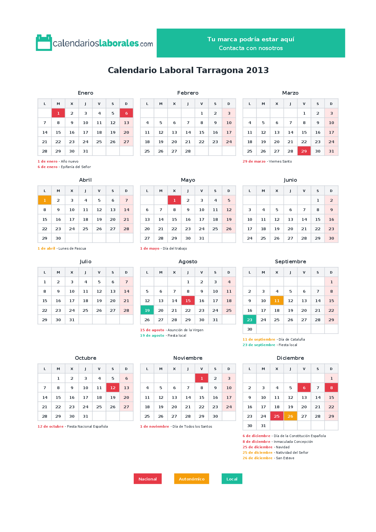 Calendario laboral Tarragona 2013