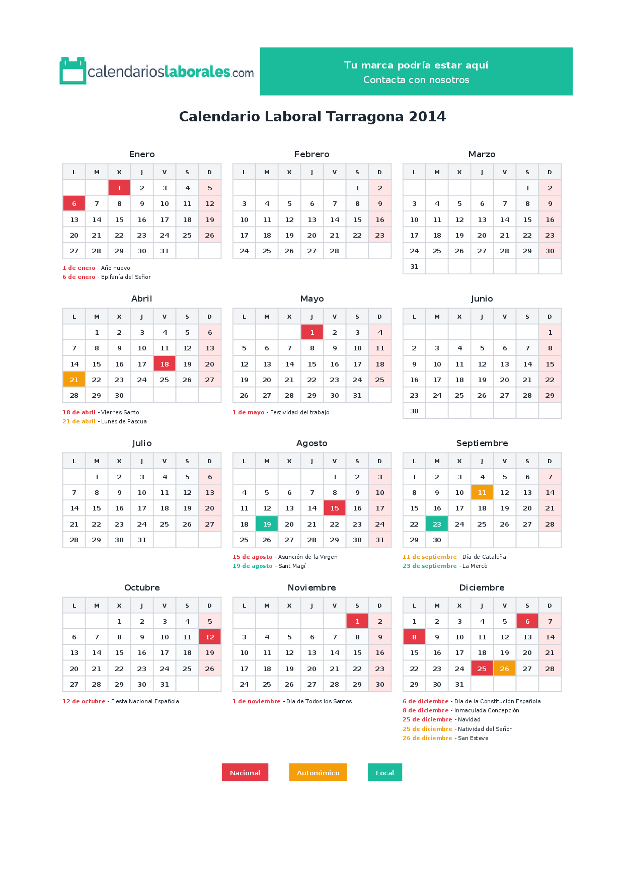Calendario laboral Tarragona 2014