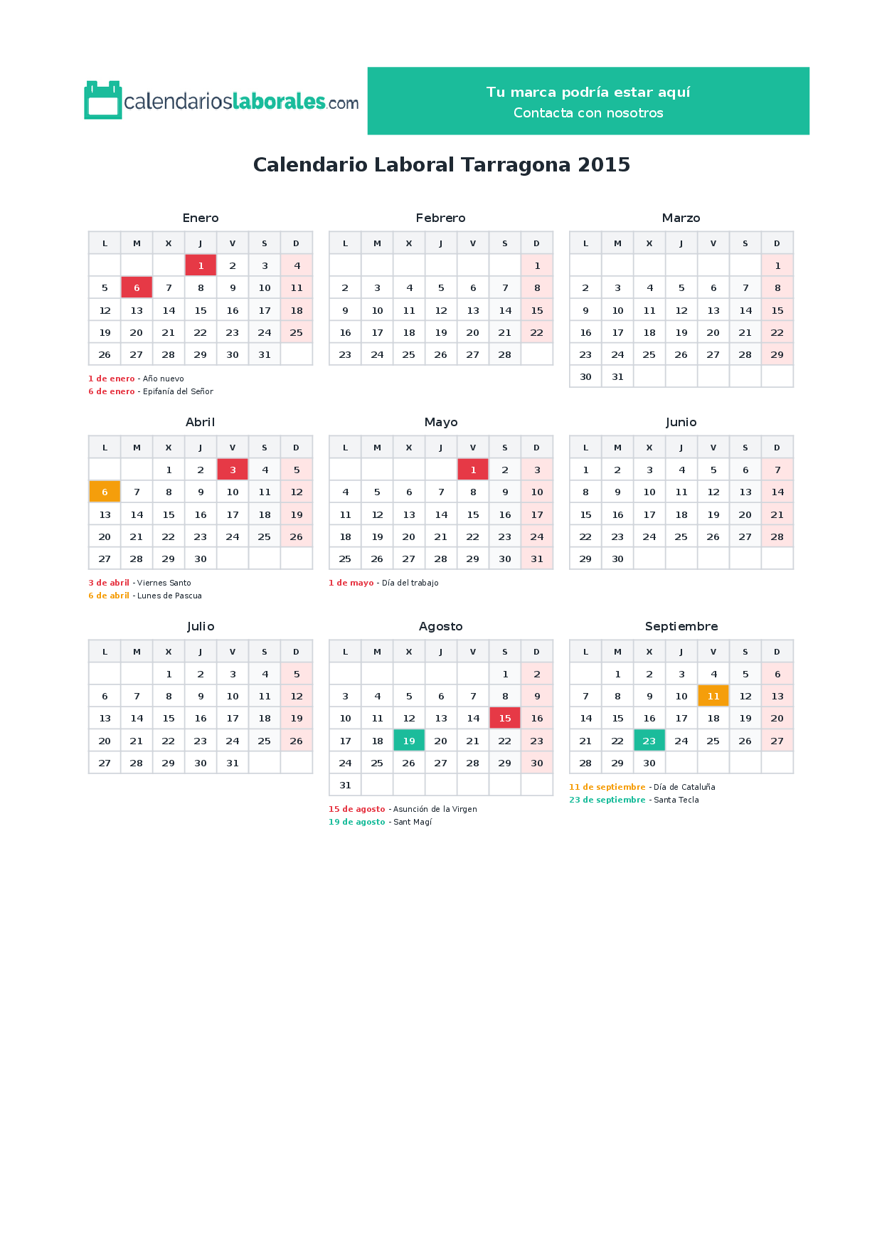 Calendario laboral Tarragona 2015