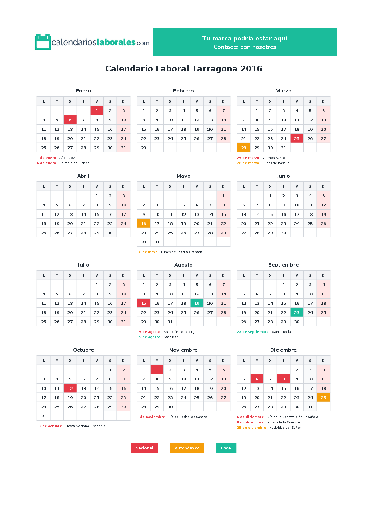 Calendario laboral Tarragona 2016