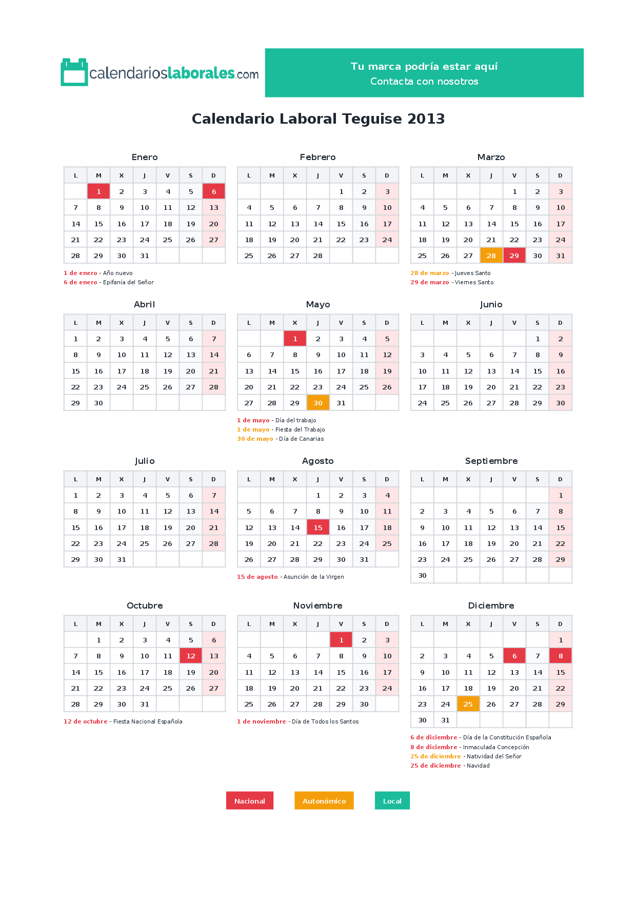 Calendario laboral Teguise 2013