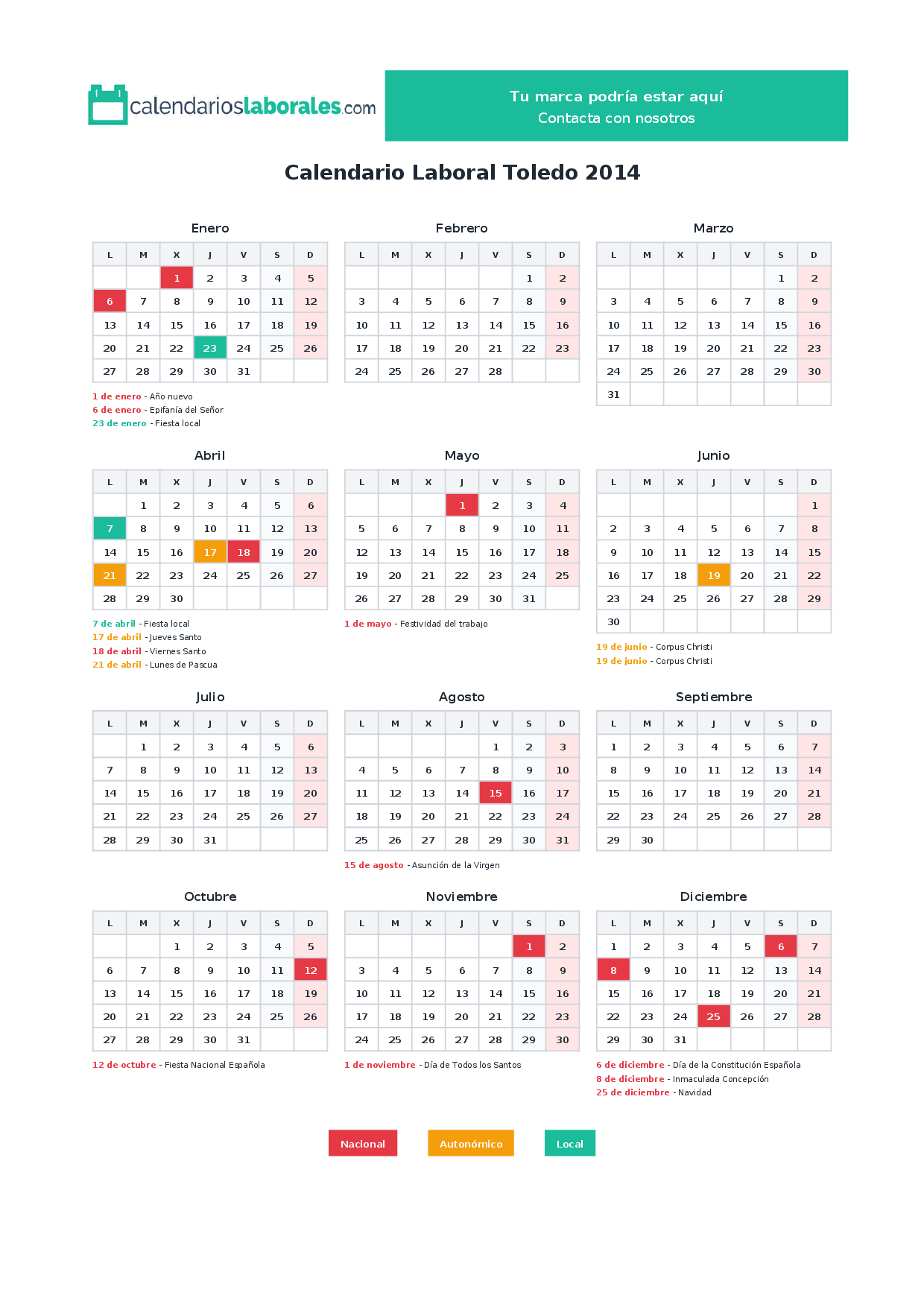 Calendario laboral Toledo 2014