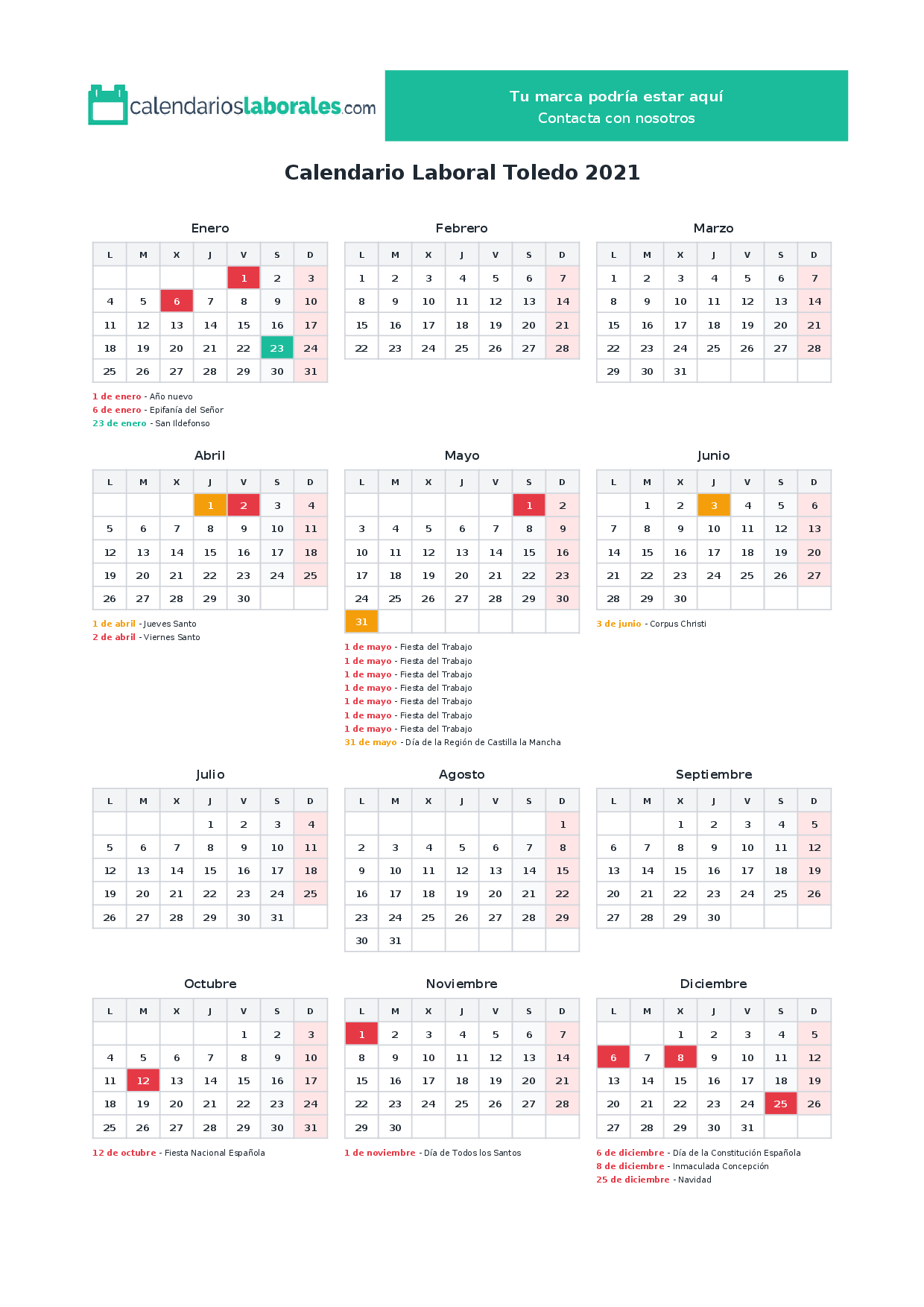 Calendario laboral Toledo 2021