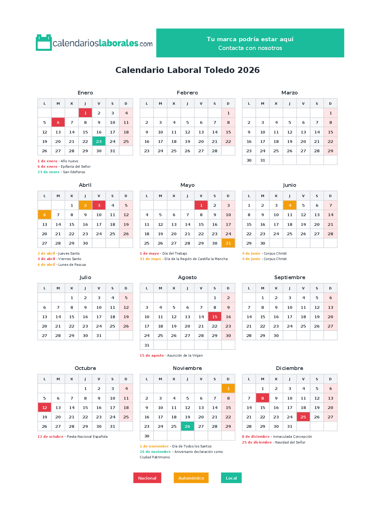 Calendario laboral Toledo 2026
