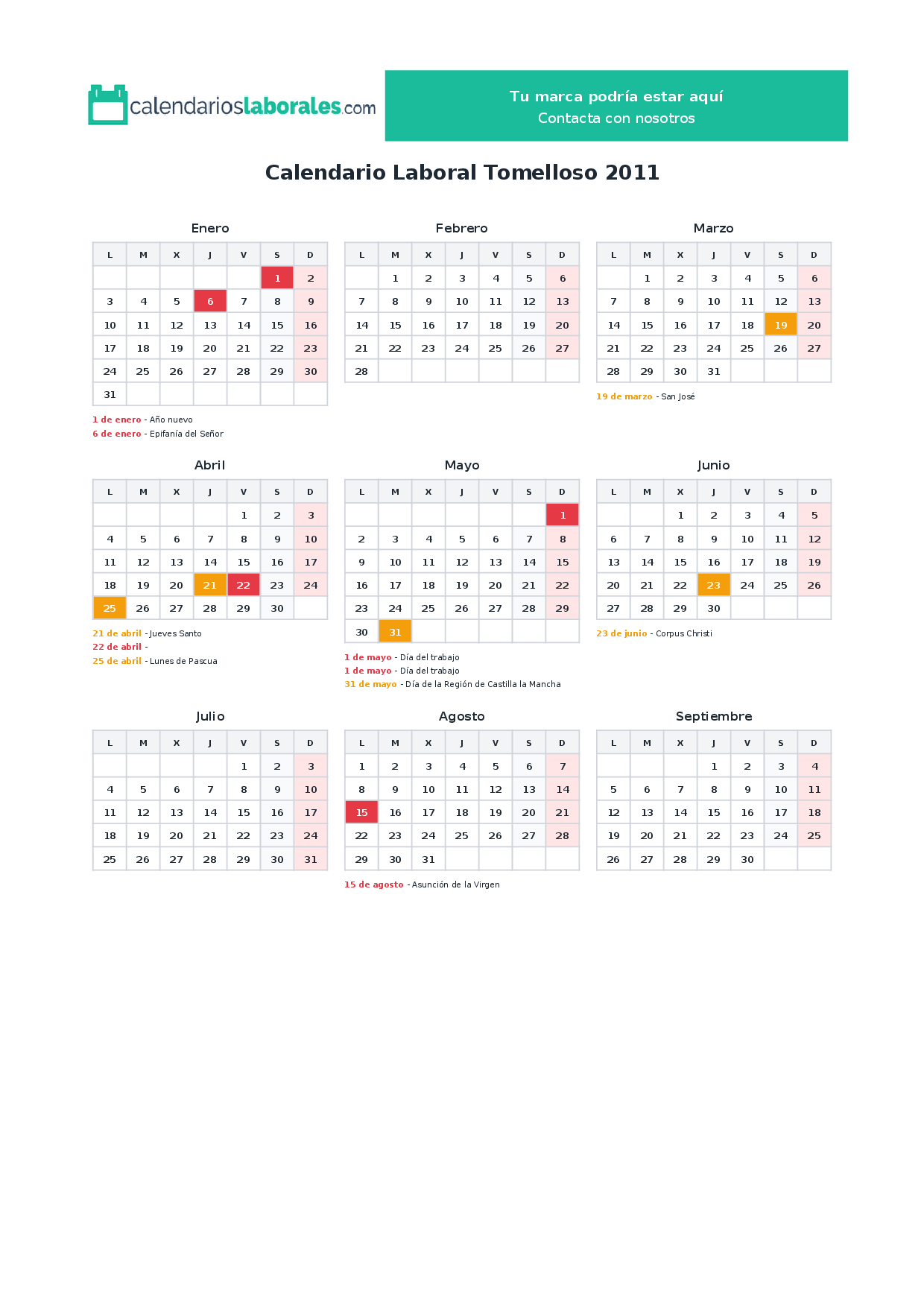 Calendario laboral Tomelloso 2011