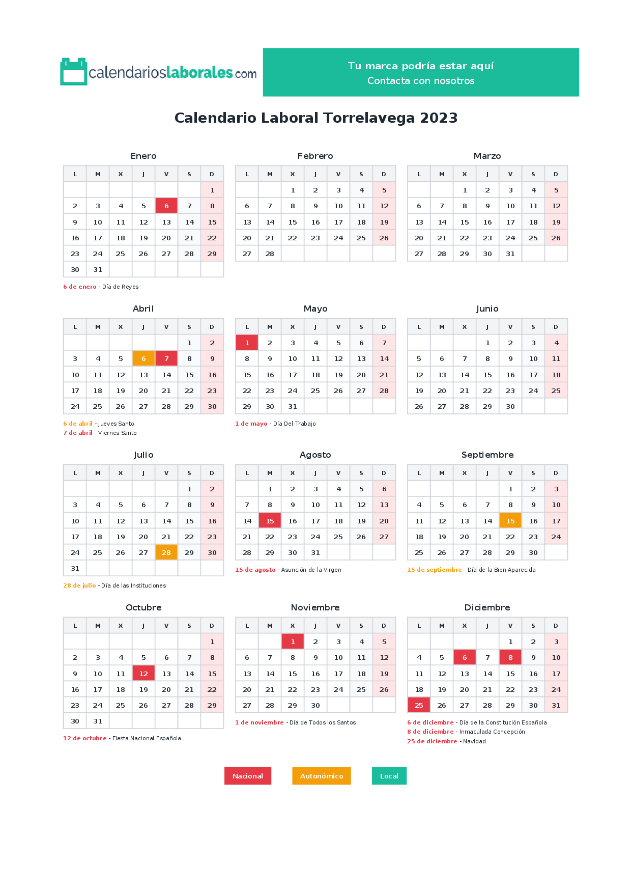 Calendario laboral Torrelavega 2023