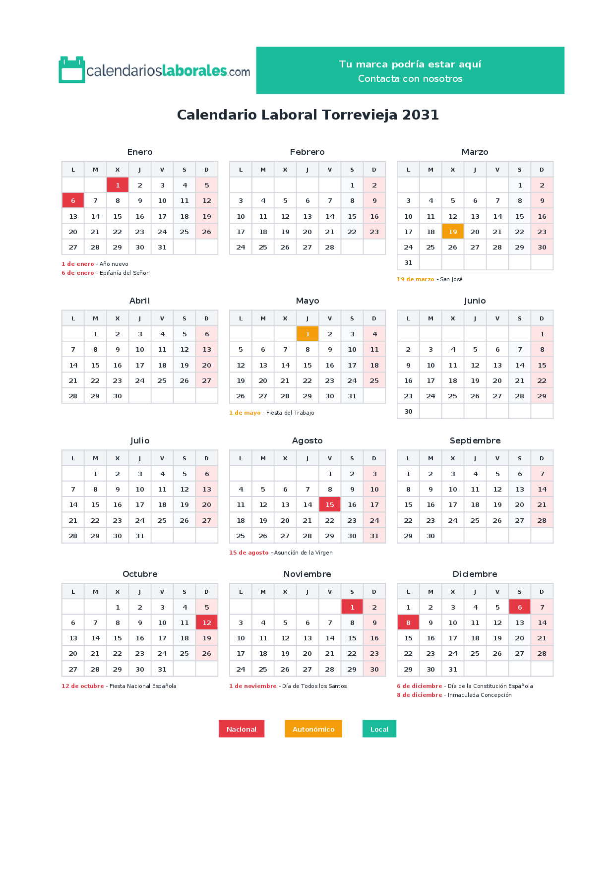 Calendario laboral Torrevieja 2031