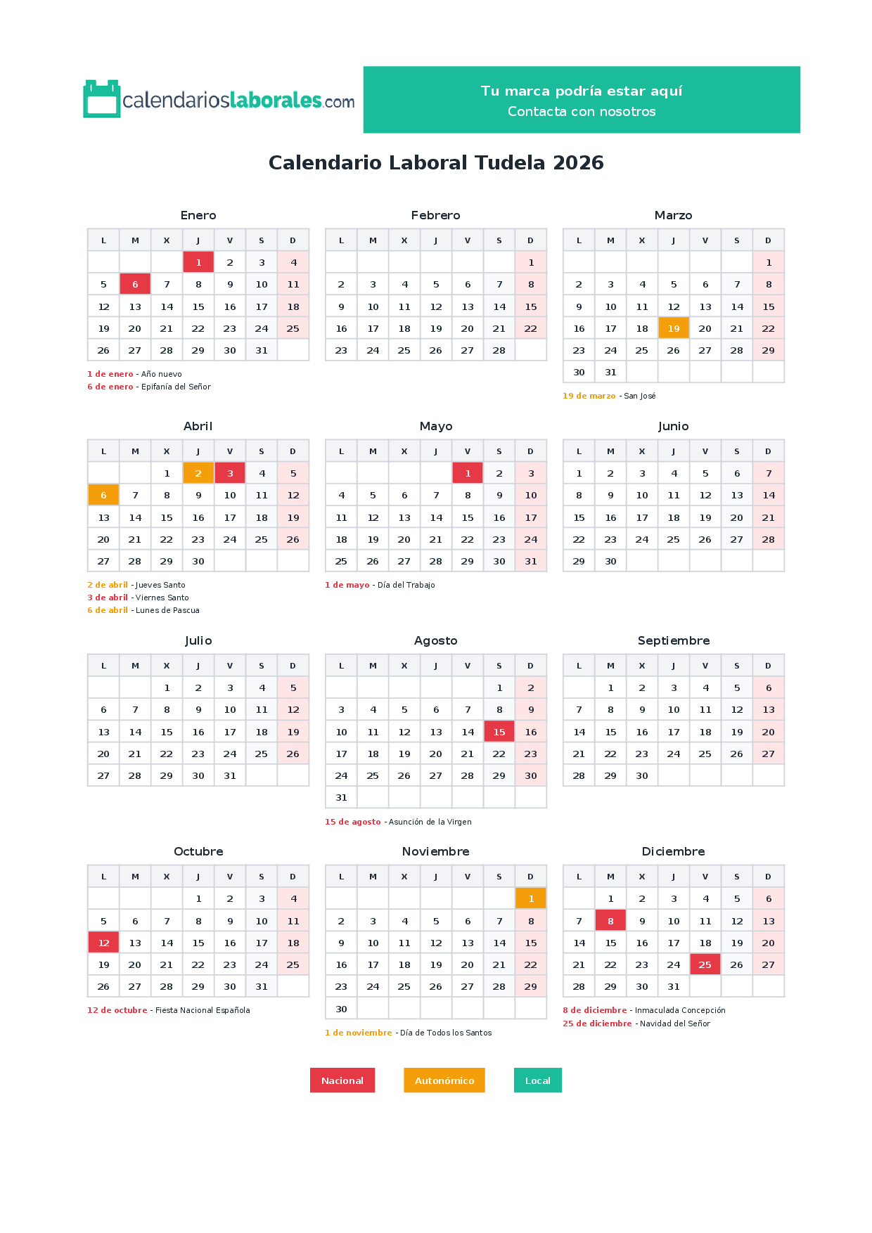 Calendario laboral Tudela 2026