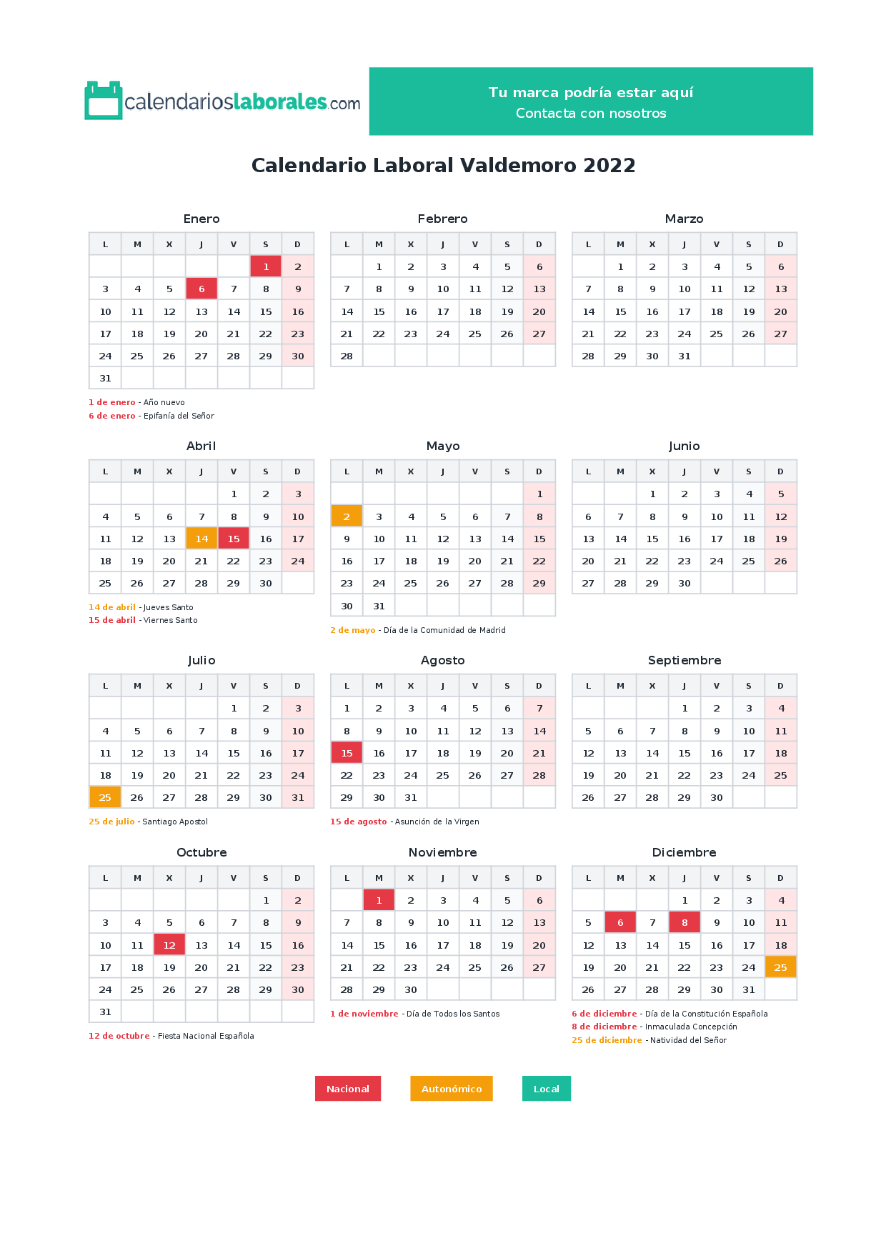 Calendario laboral Valdemoro 2022