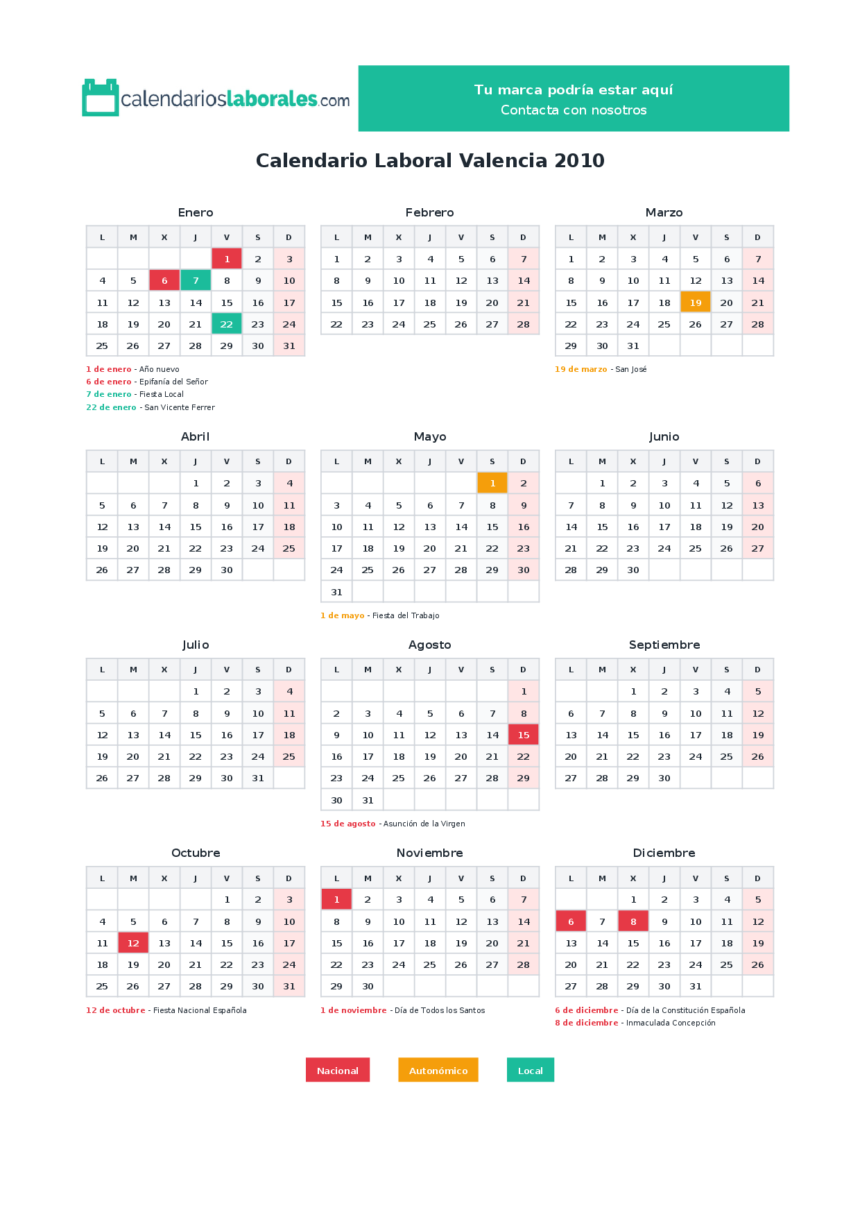 Calendario laboral Valencia 2010
