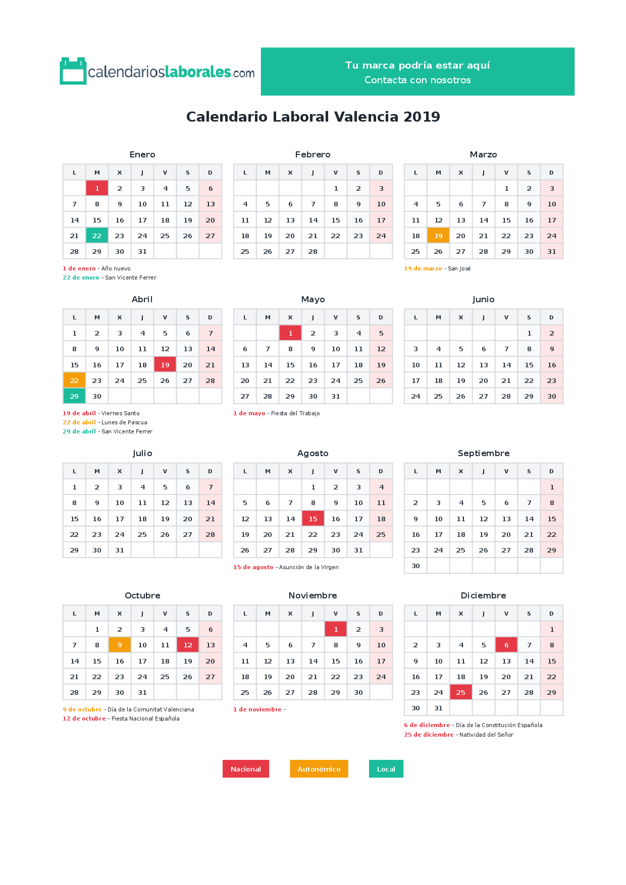 Calendario laboral Valencia 2019