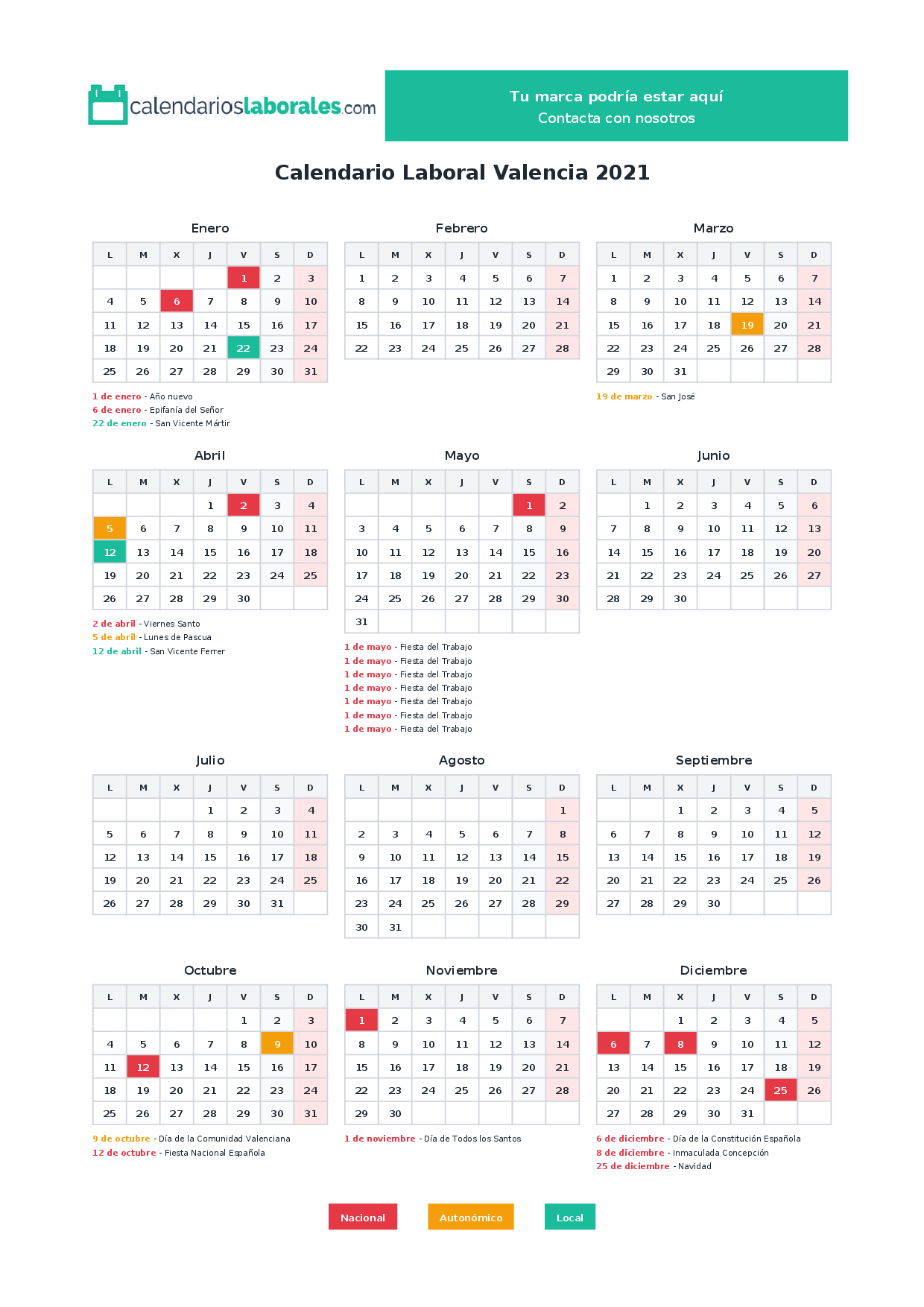 Calendario laboral Valencia 2021