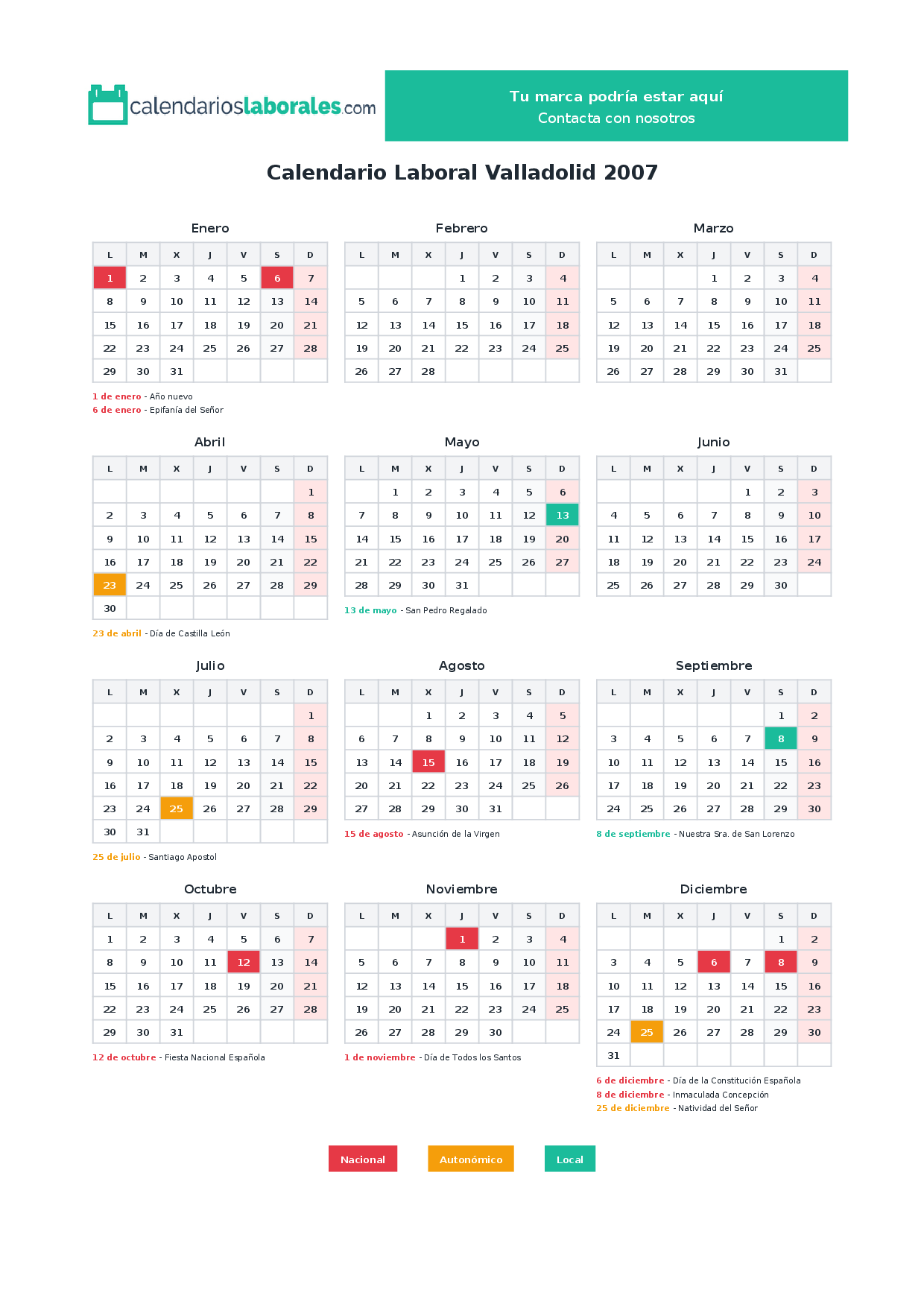 Calendario laboral Valladolid 2007