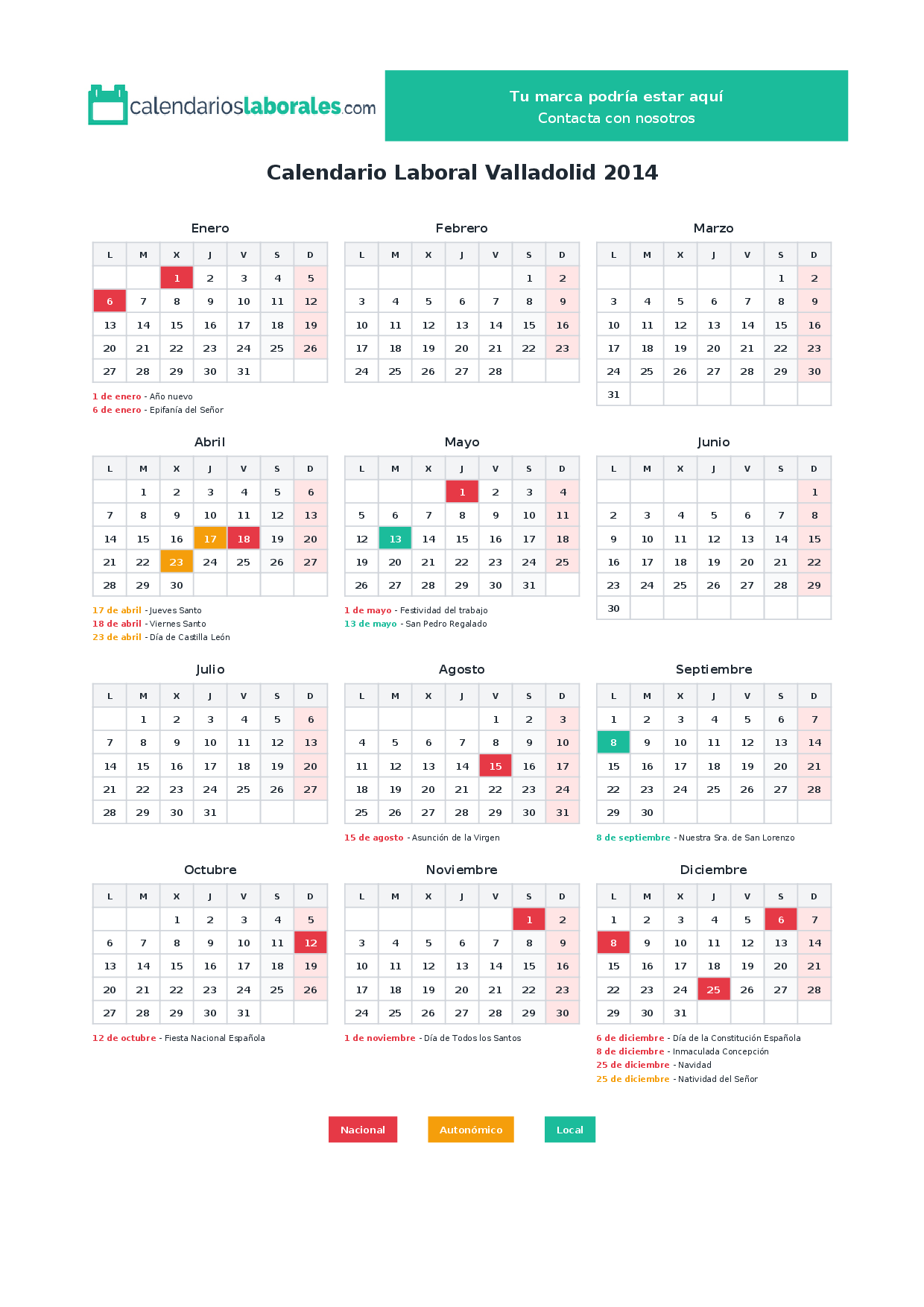 Calendario laboral Valladolid 2014