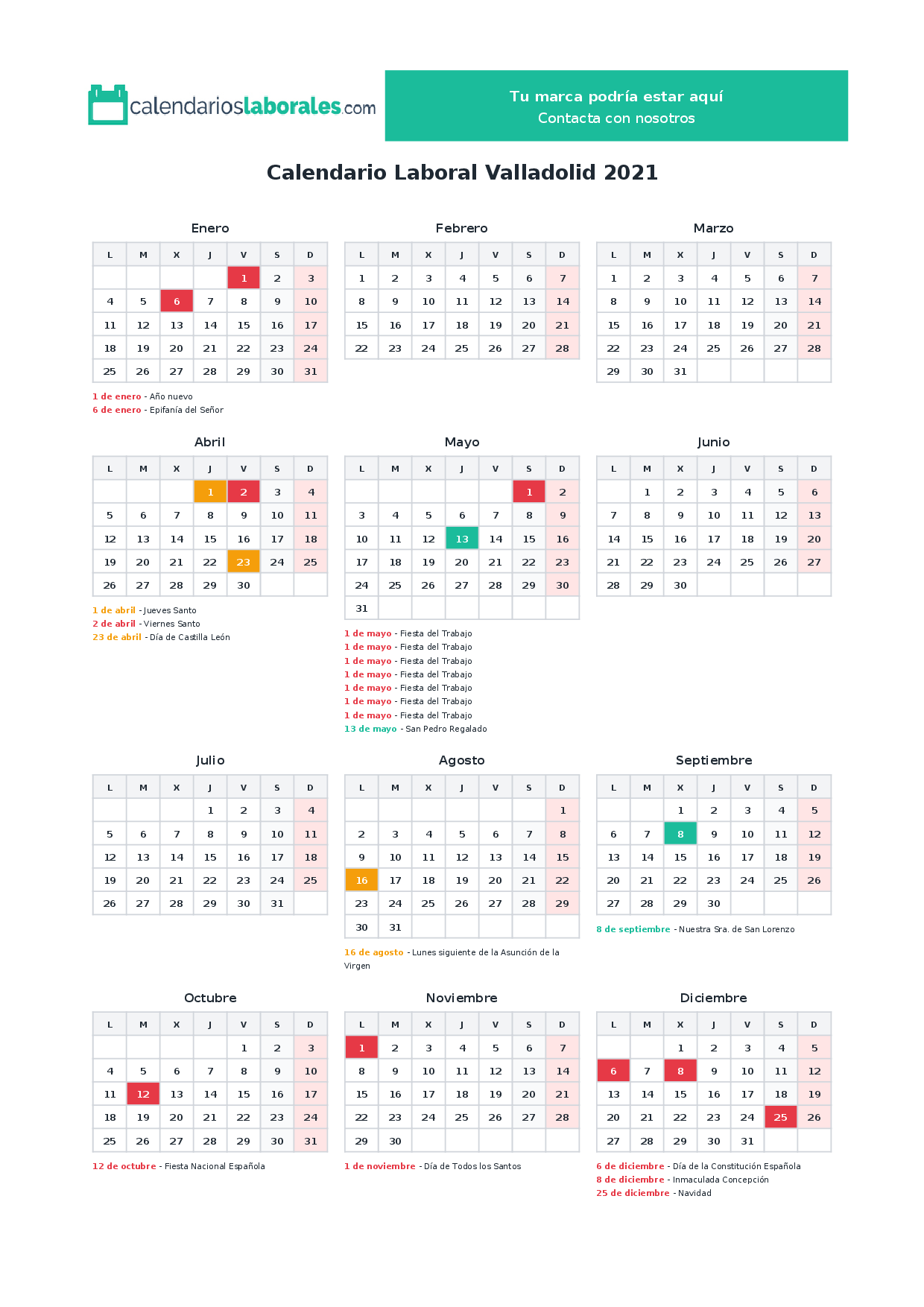 Calendario laboral Valladolid 2021