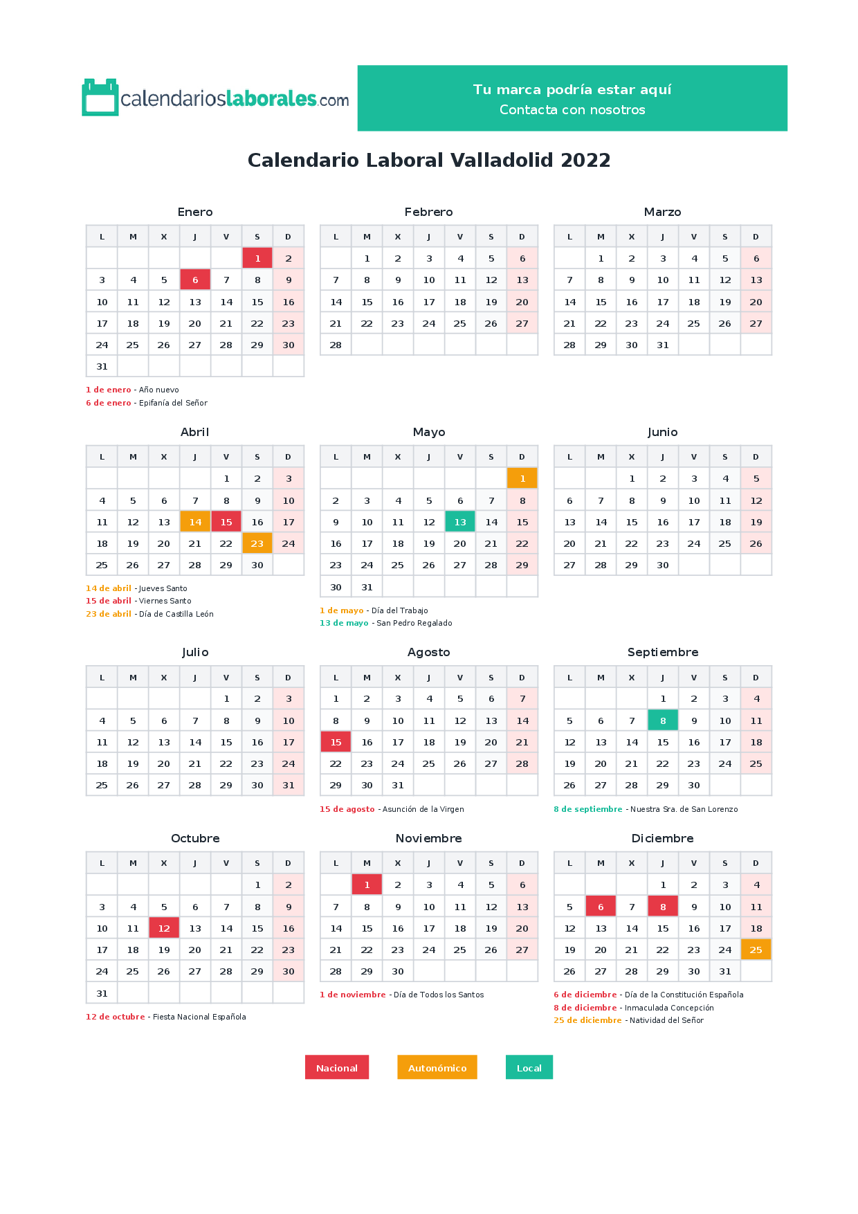Calendario laboral Valladolid 2022