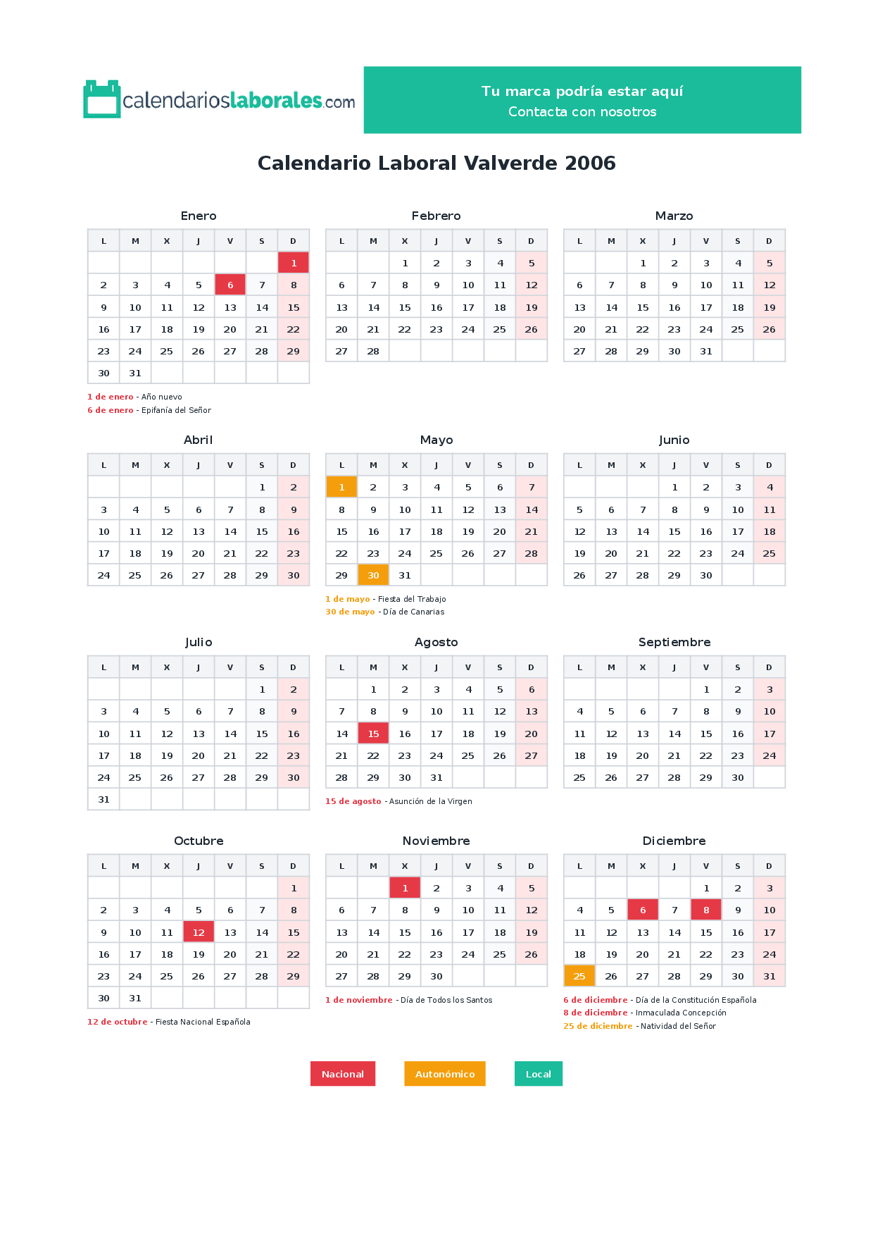 Calendario laboral Valverde 2006