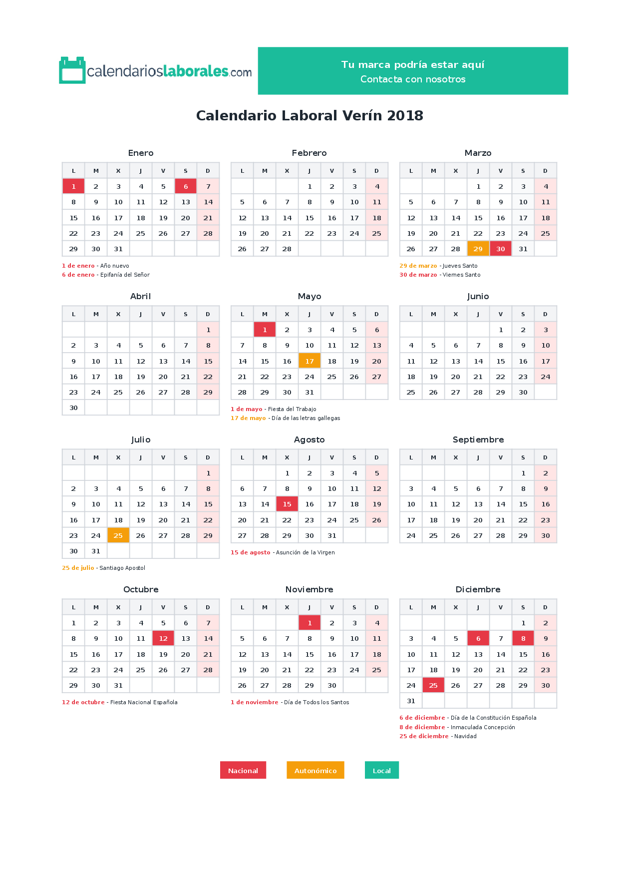 Calendario laboral Verín 2018
