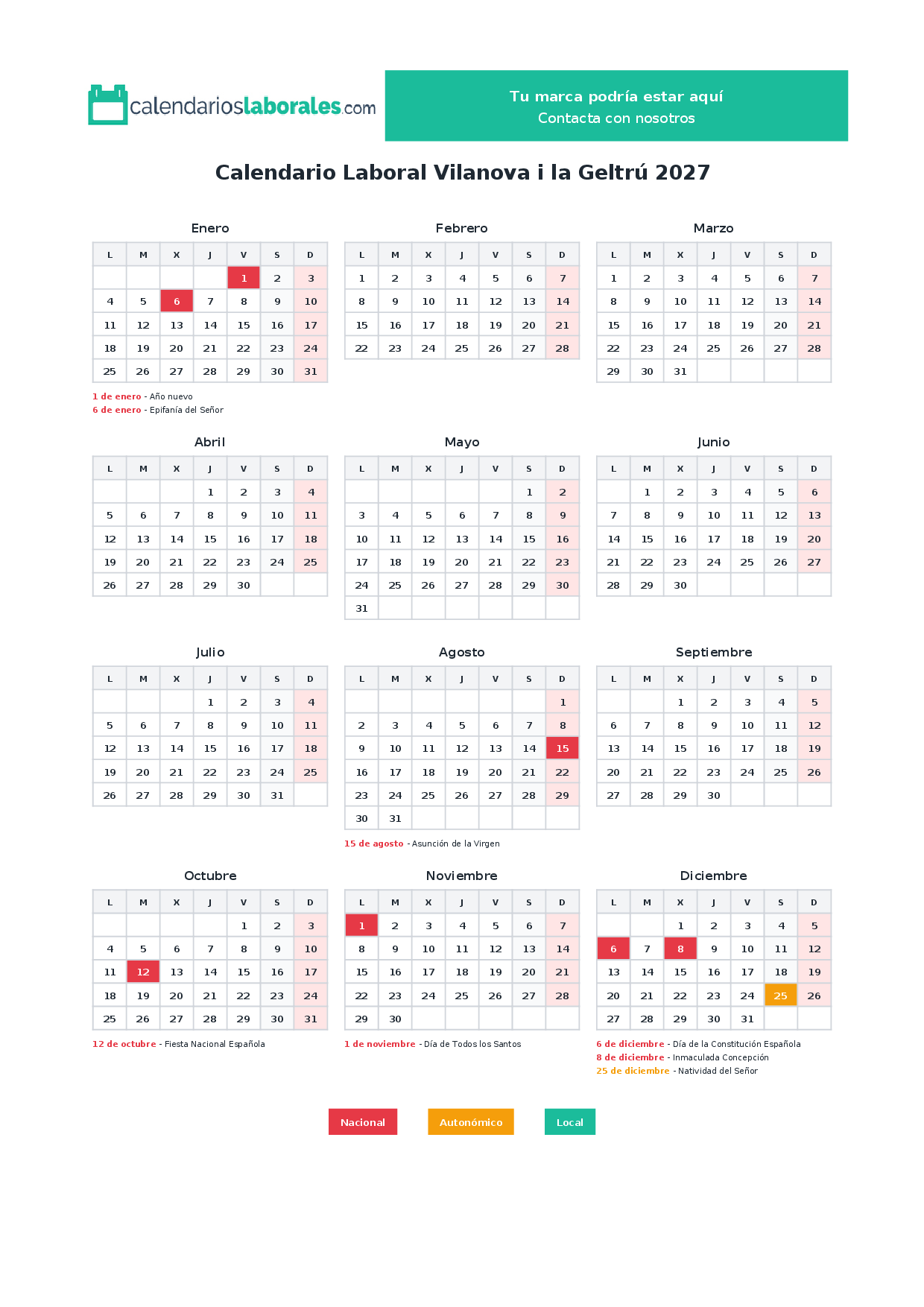 Calendario laboral Vilanova i la Geltrú 2027