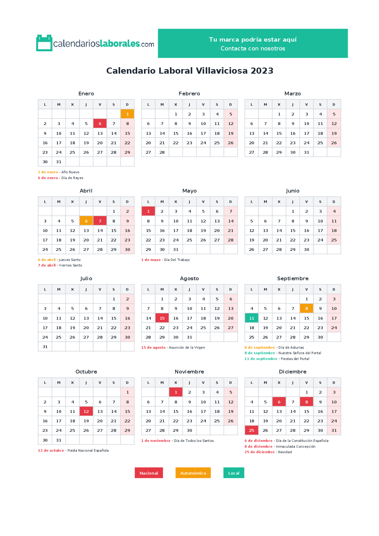 Calendario laboral Villaviciosa 2023