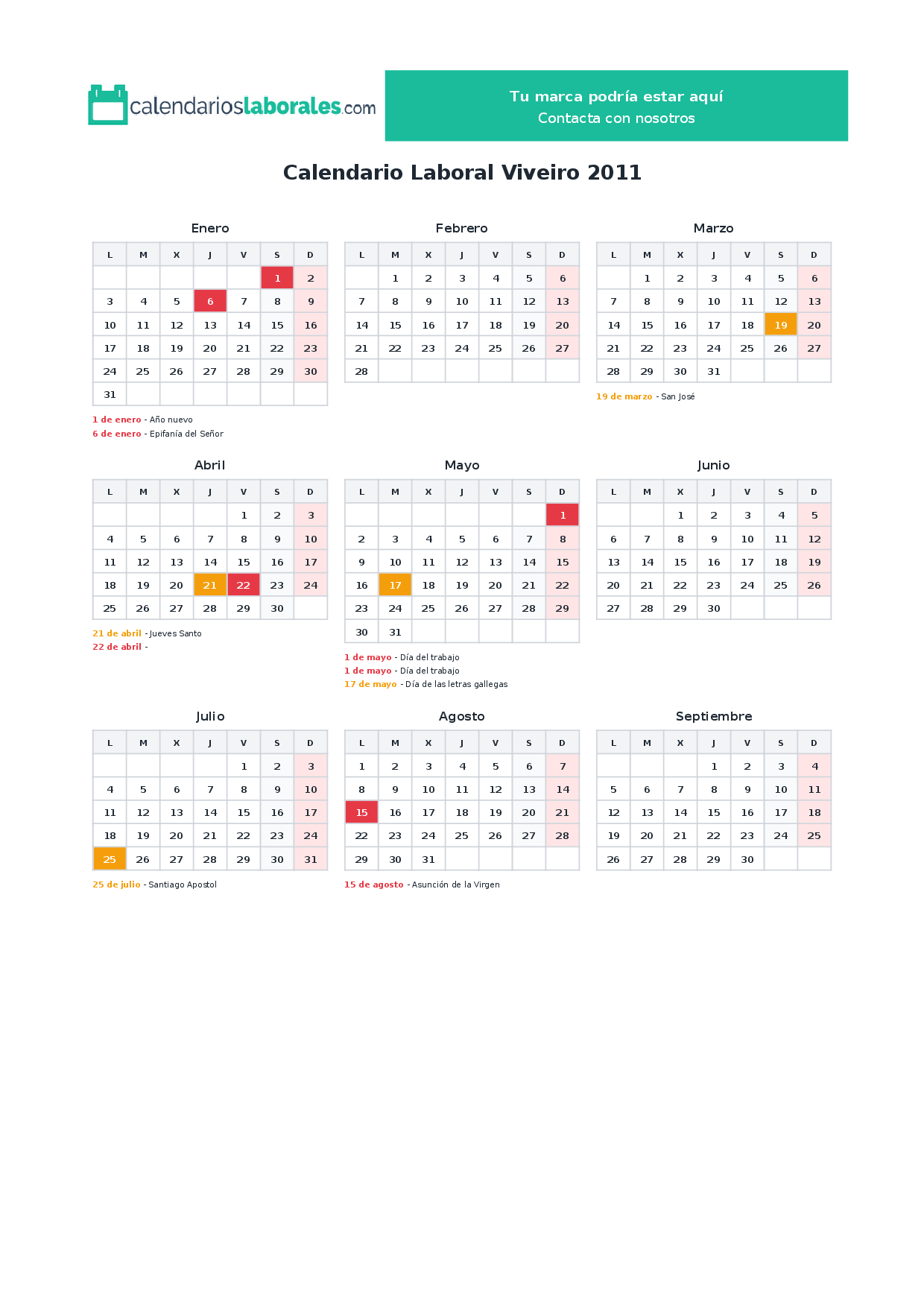 Calendario laboral Viveiro 2011